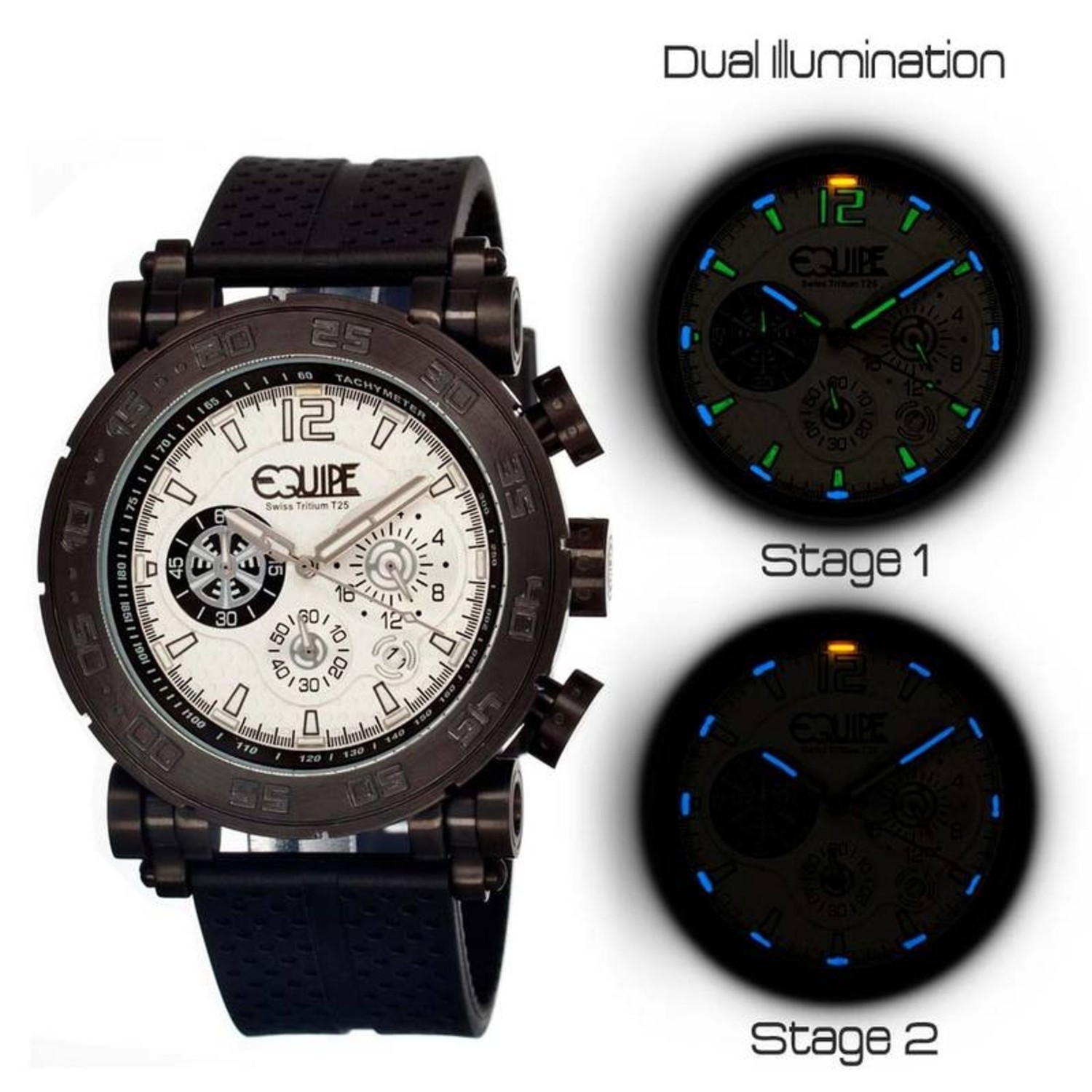 Assert your style with this killer timepiece. It boasts quartz movement, a black bezel, rubber band, water resistance to 20 ATM, and tritium illumination. Take this watch on the road and see what adventures unfold.