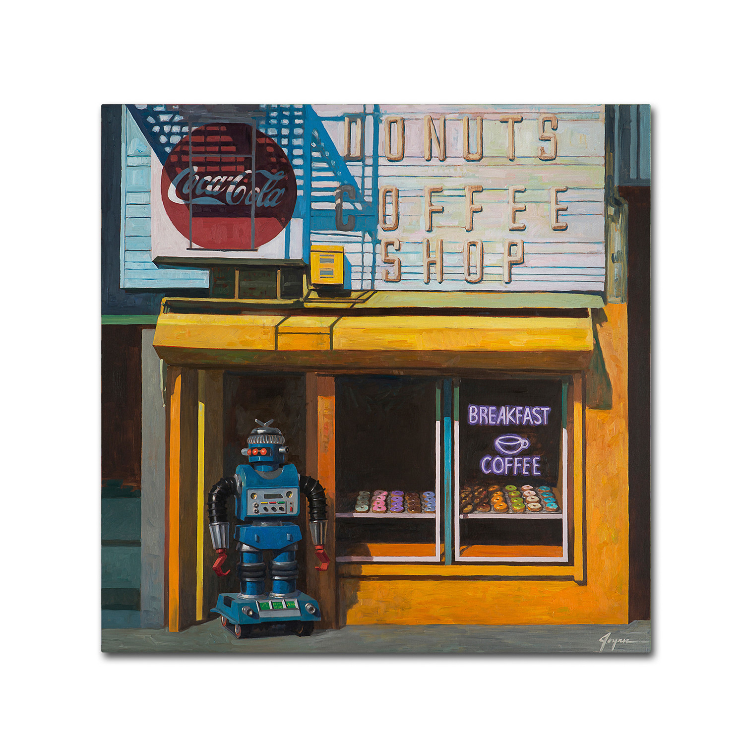 This canvas print by Eric Joyner combines realism and whimsical fantasy with robots and recognizable pop culture images for a timeless piece that juxtaposes science-fiction and classical art, and will make anyone who sees it do a double-take.