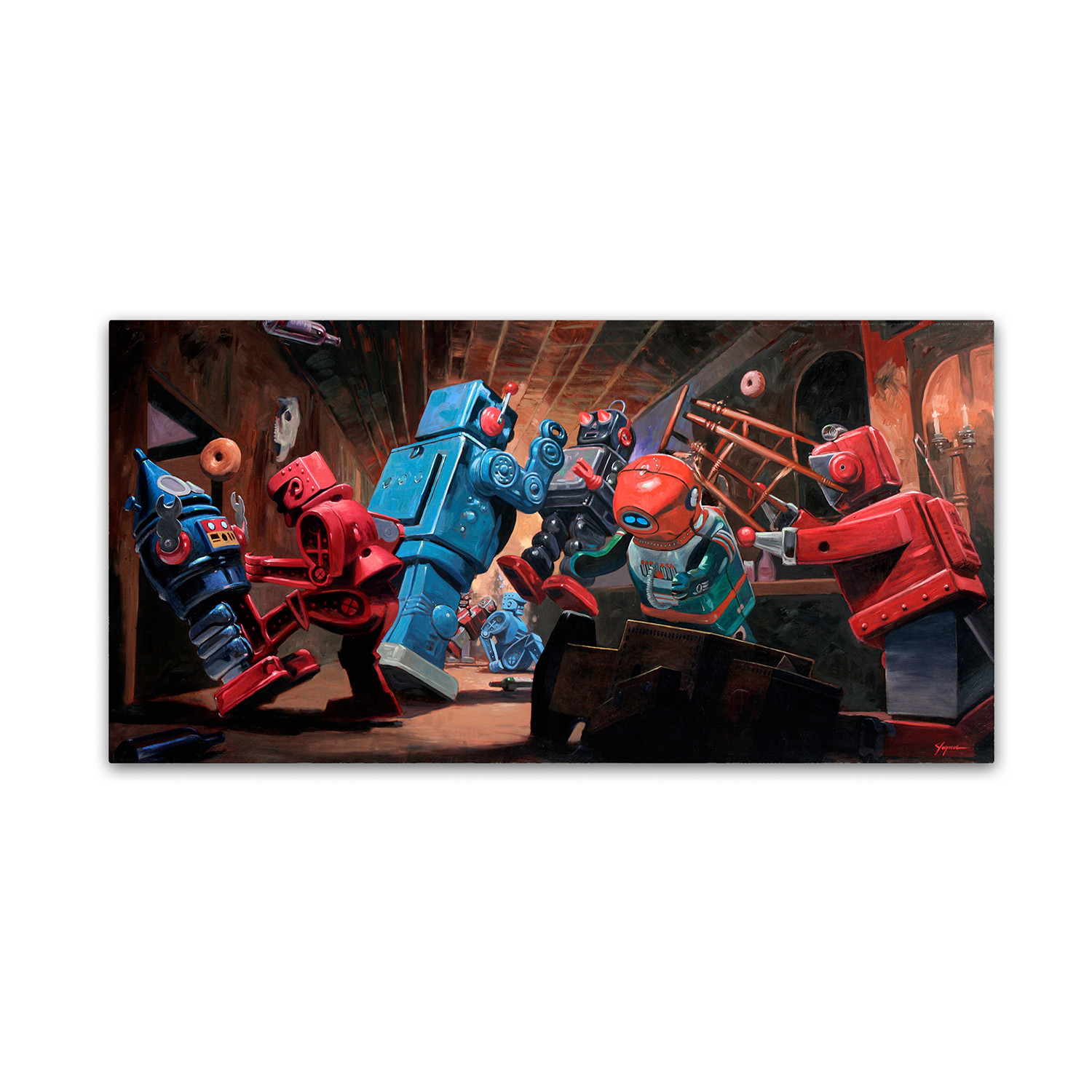 This canvas print by Eric Joyner combines realism and whimsical fantasy with robots and recognizable pop culture images for a timeless piece that juxtaposes science-fiction and classical art, and will make anyone who sees it do a double-take.