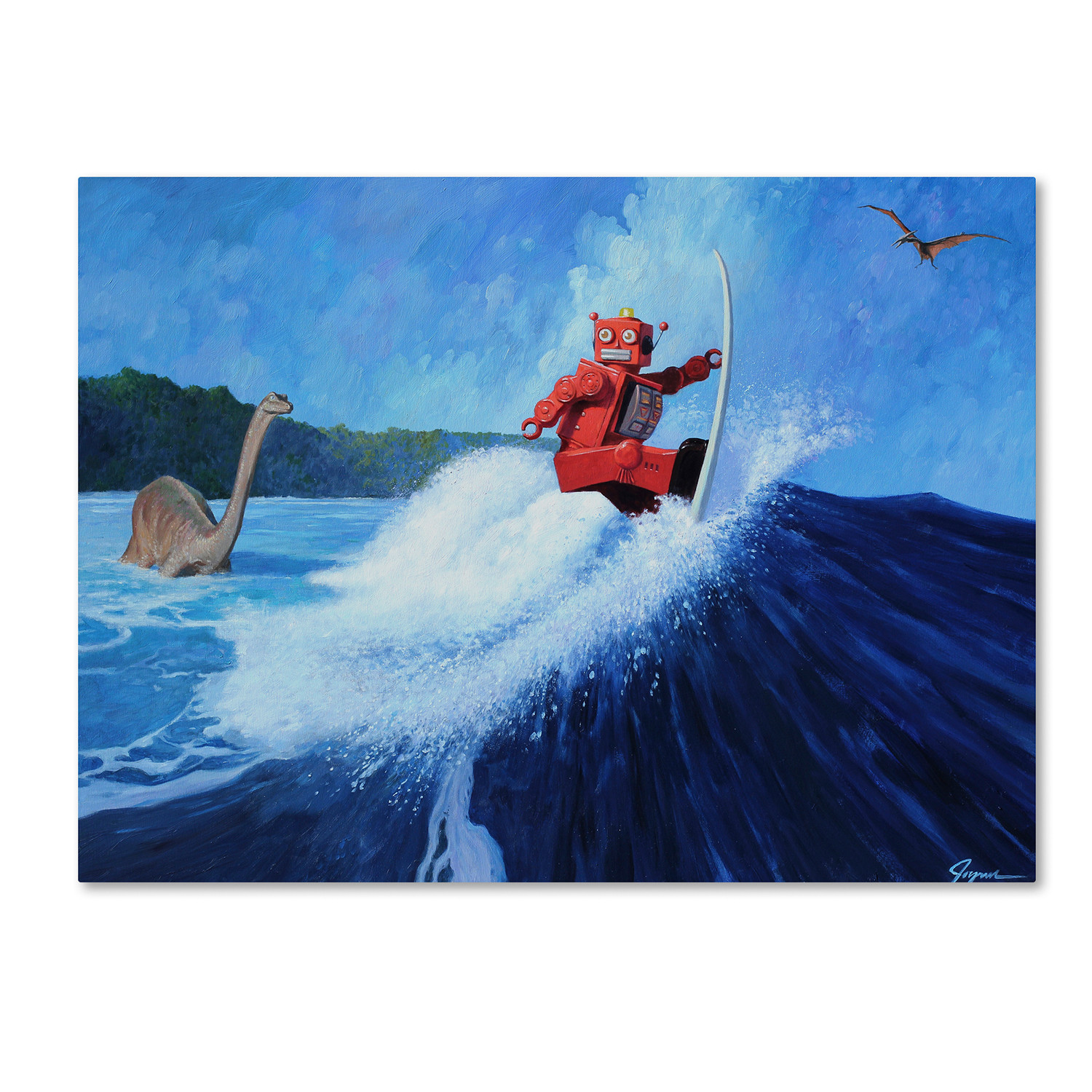 This canvas print by Eric Joyner combines realism and whimsical fantasy with robots and recognizable pop culture images for a timeless piece that juxtaposes science-fiction and classical art, and will make anyone who sees it do a double-take.
