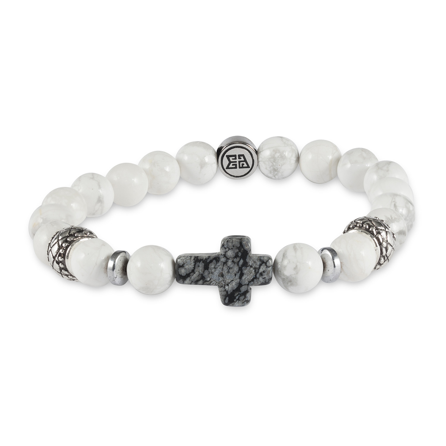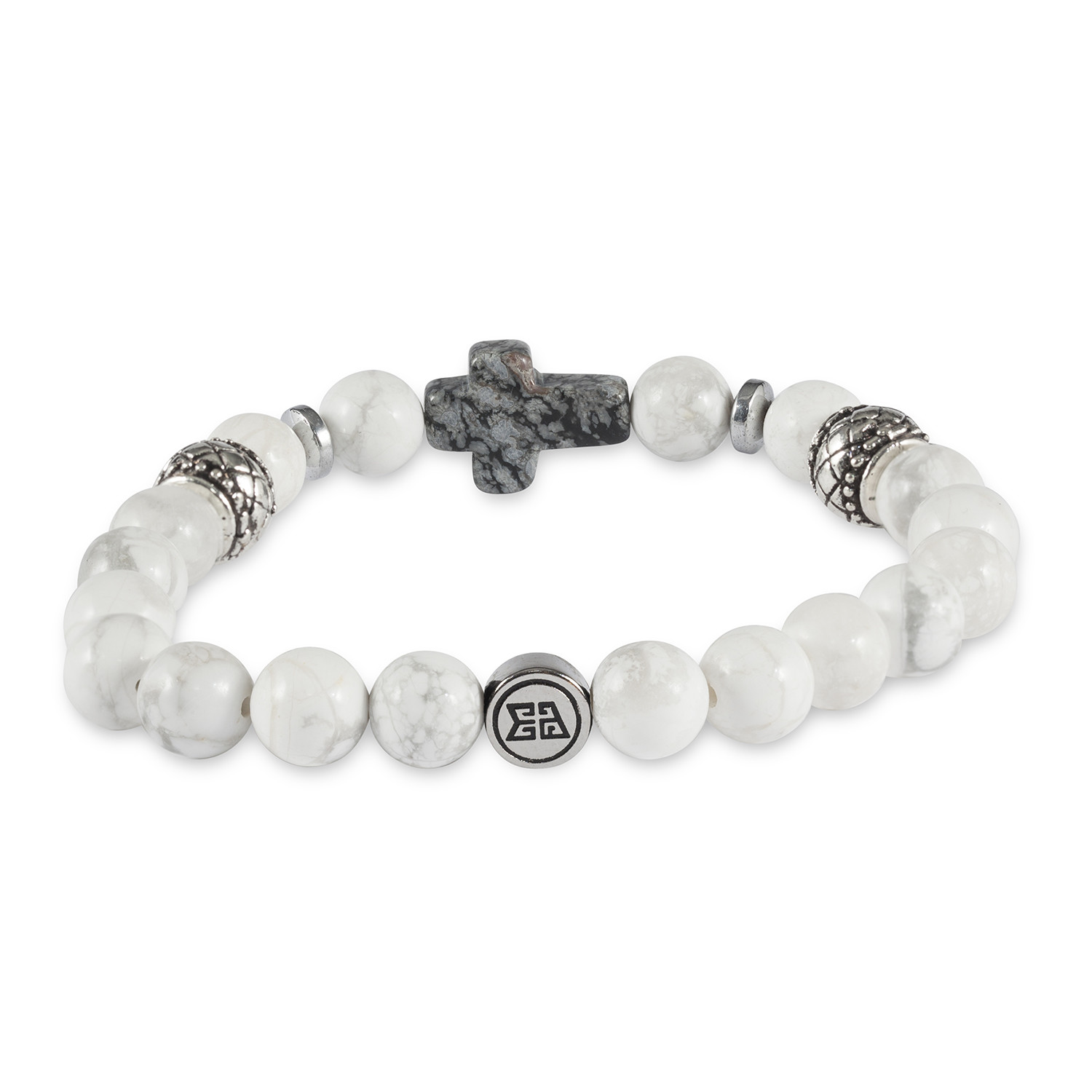 — Snowflake Cross With Howlite Beads Elastic Bracelet