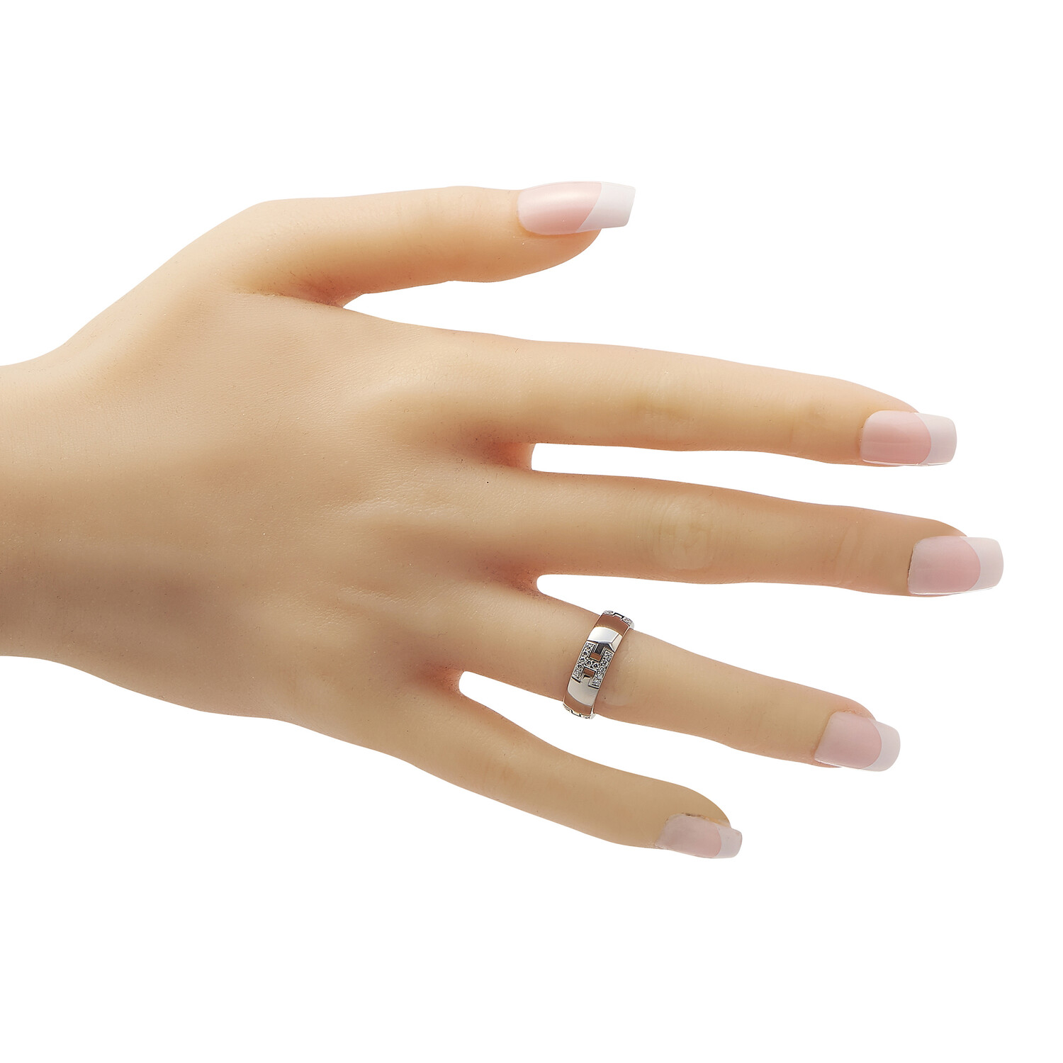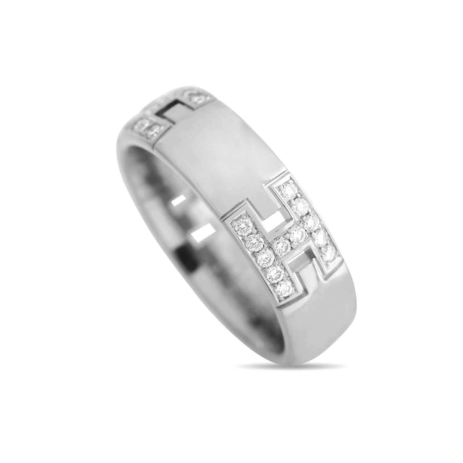 Hermes // 18K White Gold Diamond H Band Ring // Ring Size: 6.5 // Estate
