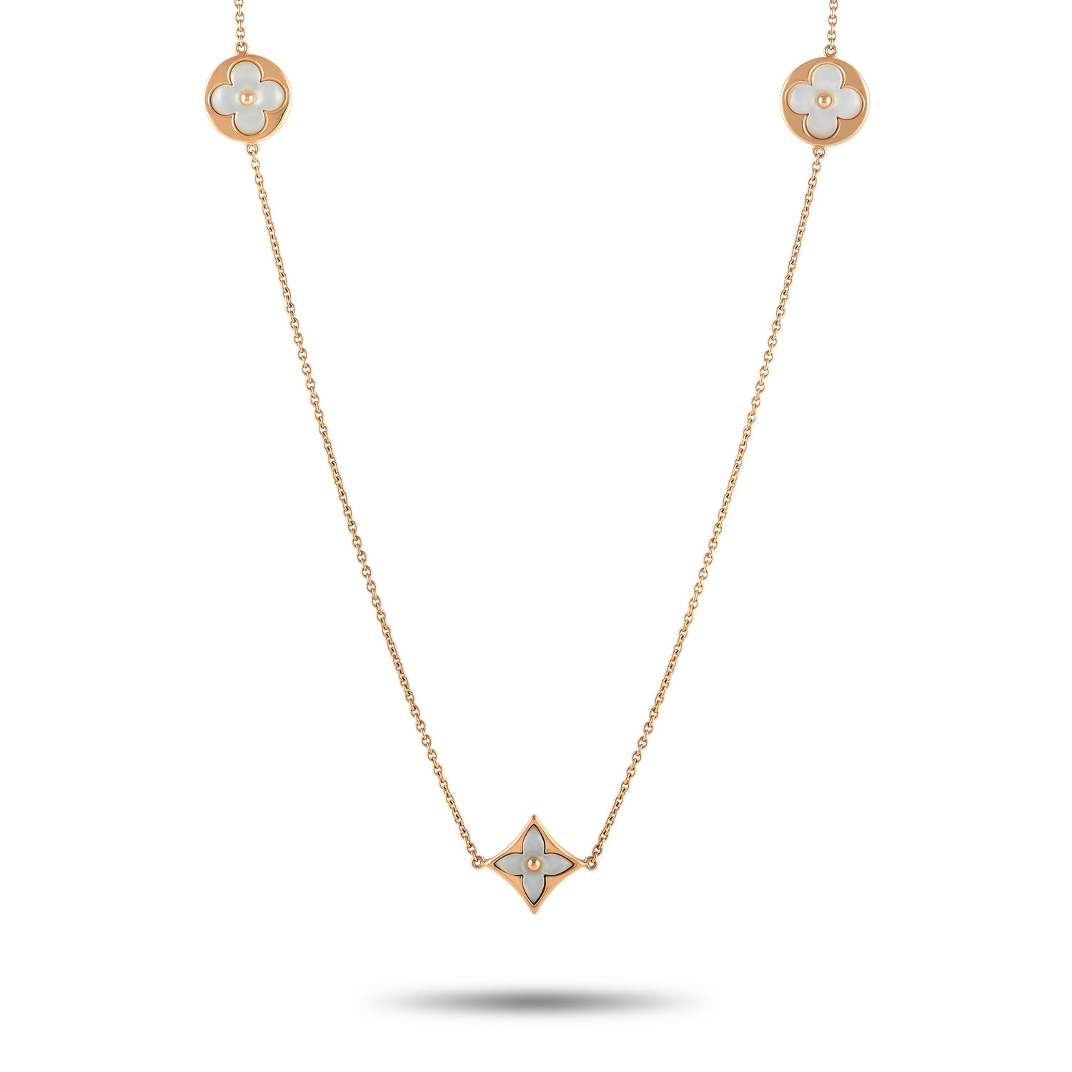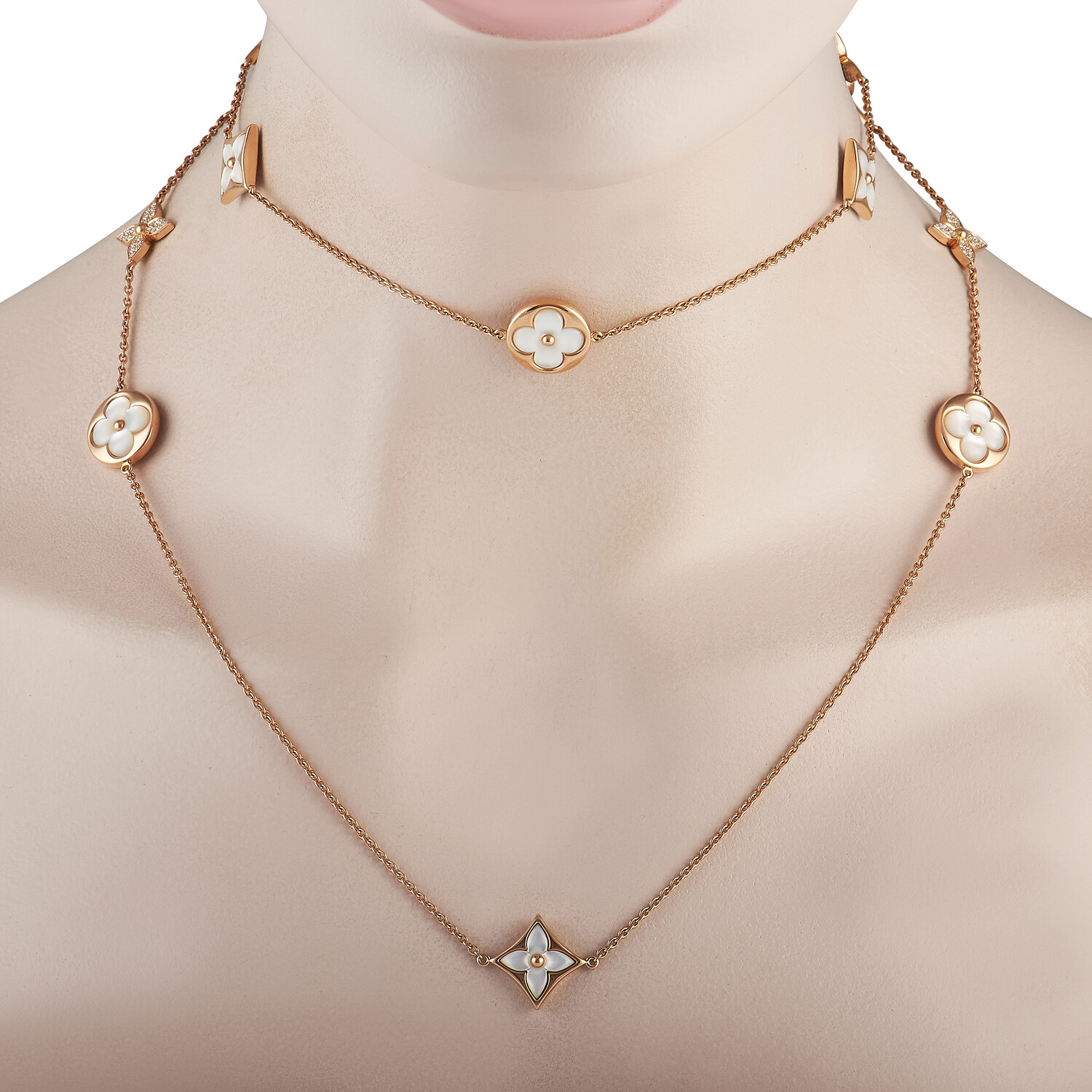 Louis Vuitton // Blossom 18K Rose Gold Diamond + Mother of Pearl Sautoir Necklace // 36" // Estate