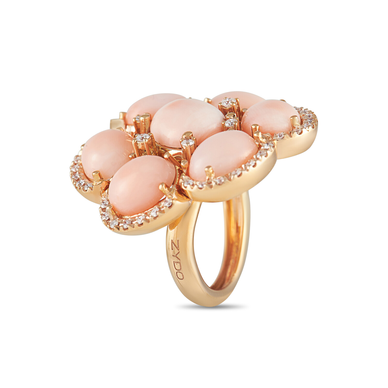 Zydo // 18K Rose Gold Diamond + Coral Ring // Ring Size: 6.75 // Estate