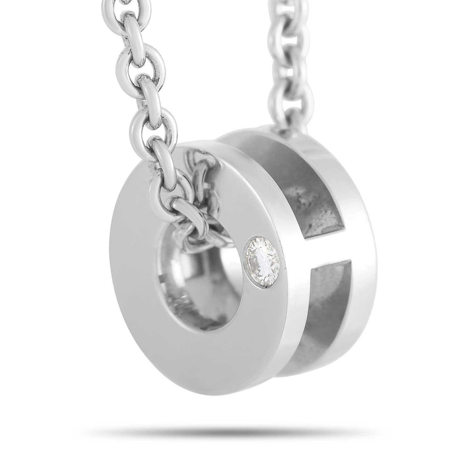 Hermès // 18K White Gold Circle Pendant Necklace // 15" // Estate
