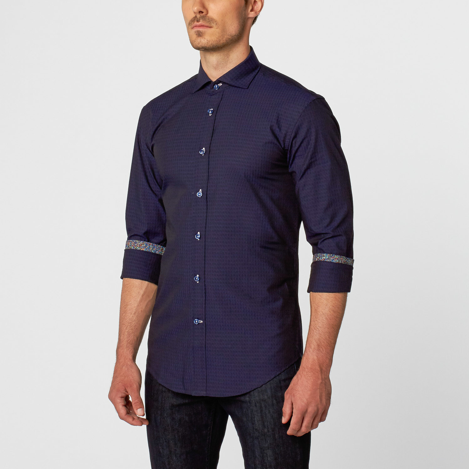 Whether you're on your way to a high powered meeting, hot date, or a casual night out with the boys, this Button-Down Dress Shirt will get you thinking less about what to wear, and focusing on what really matters — exuding style, class and confidence. And this shirt's contrasting accents and exceptional detailing do just that.