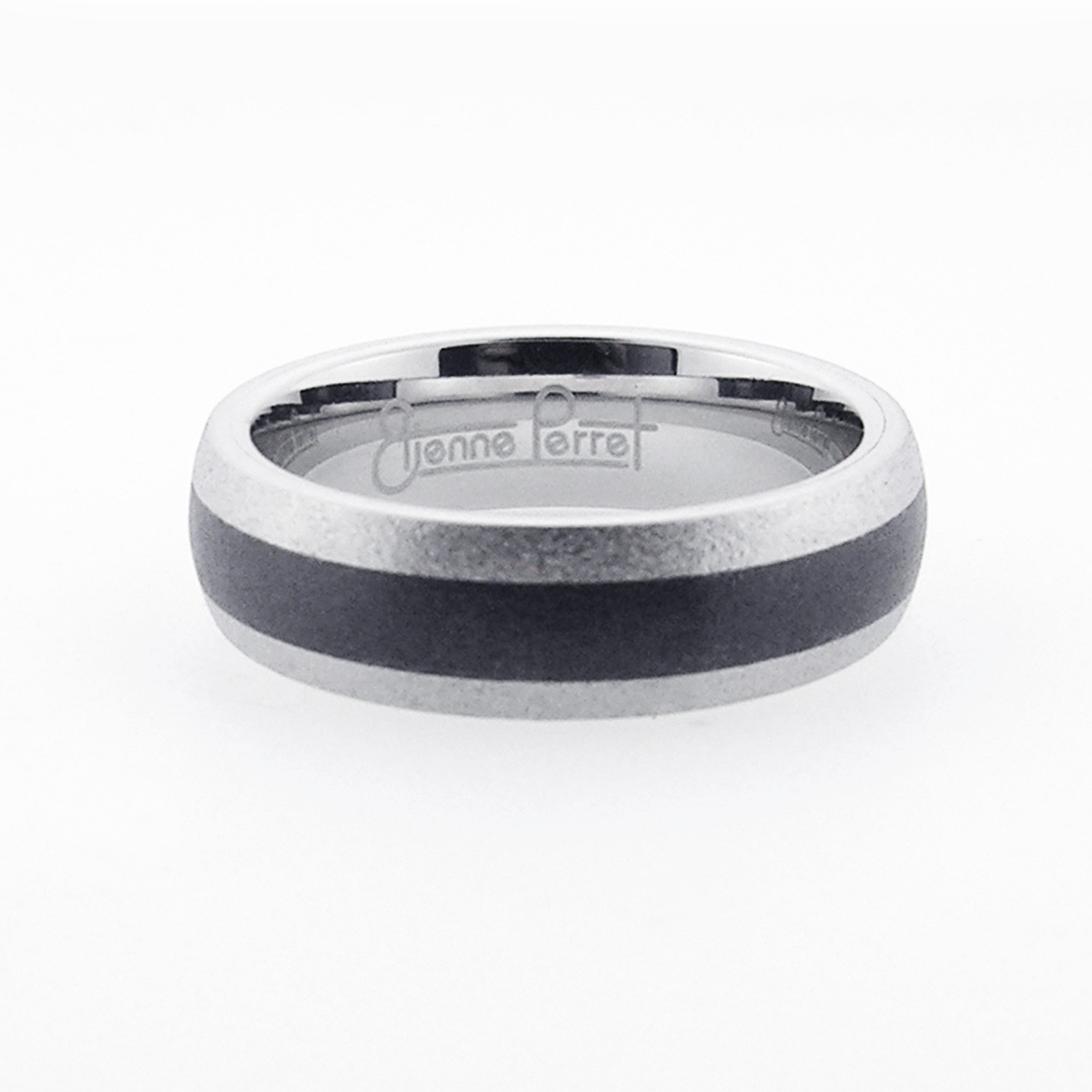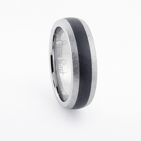 The Matte Thin Black Stripe Ring features a striped design that is one of a kind. A ring like none other, this cobalt ceramic dome band is sure to start envious conversations. The cobalt chrome stripe of matte in this modern design is perfect for those who don't like a lot of flash. With the quality that the Etienne Perret name guarantees, this ring will go with any outfit and last a lifetime with its durable structure and solid material.