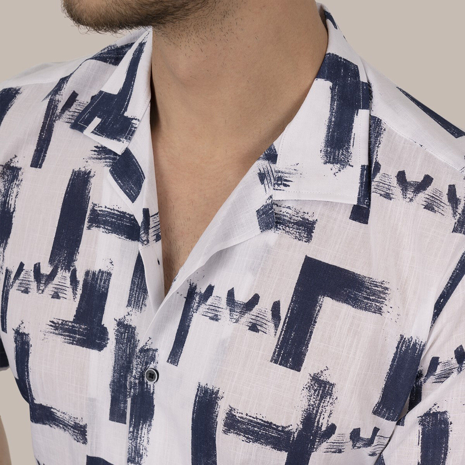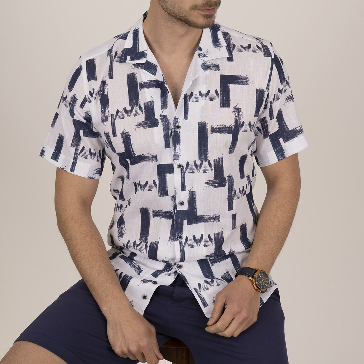 Alfie Button-Up // White + Navy Blue