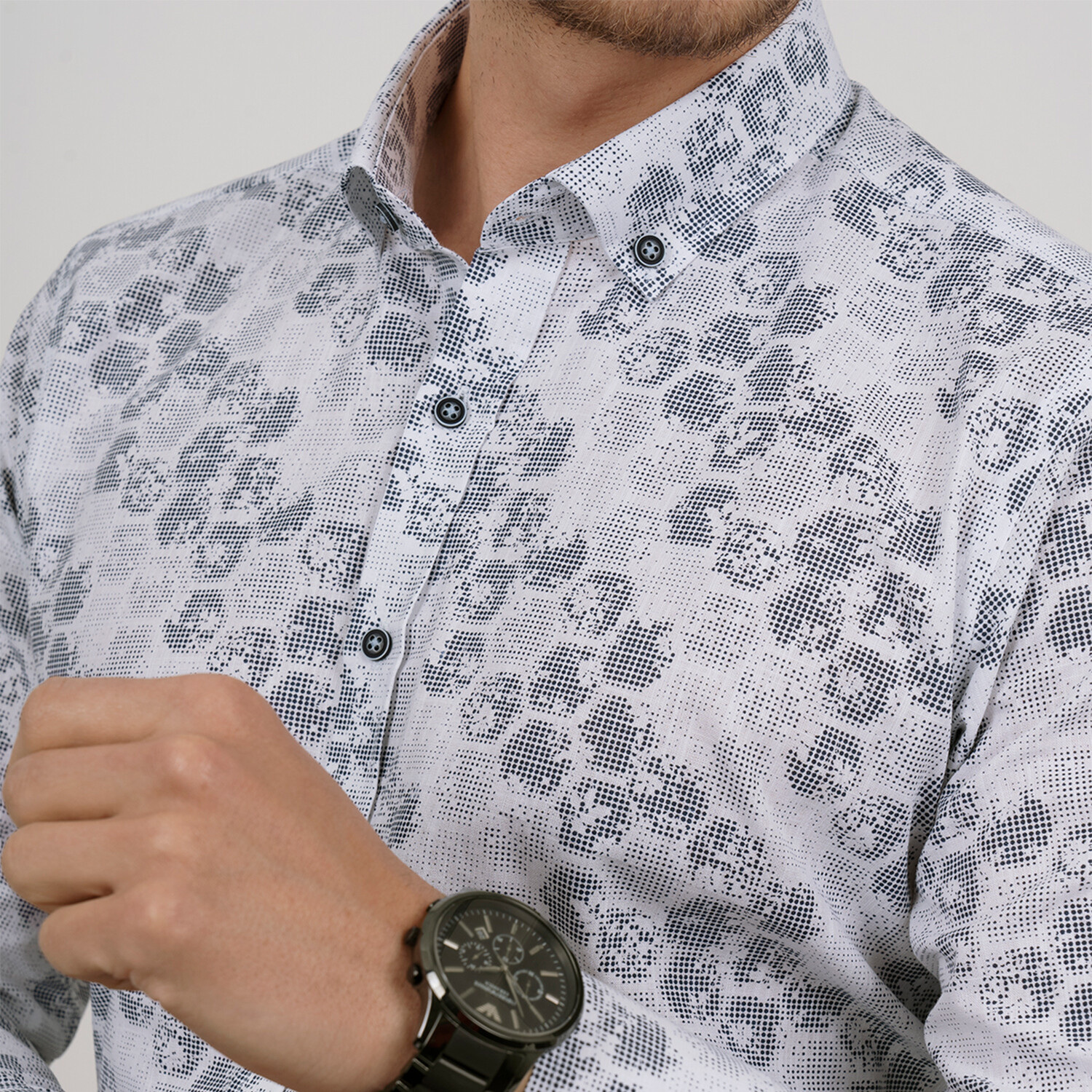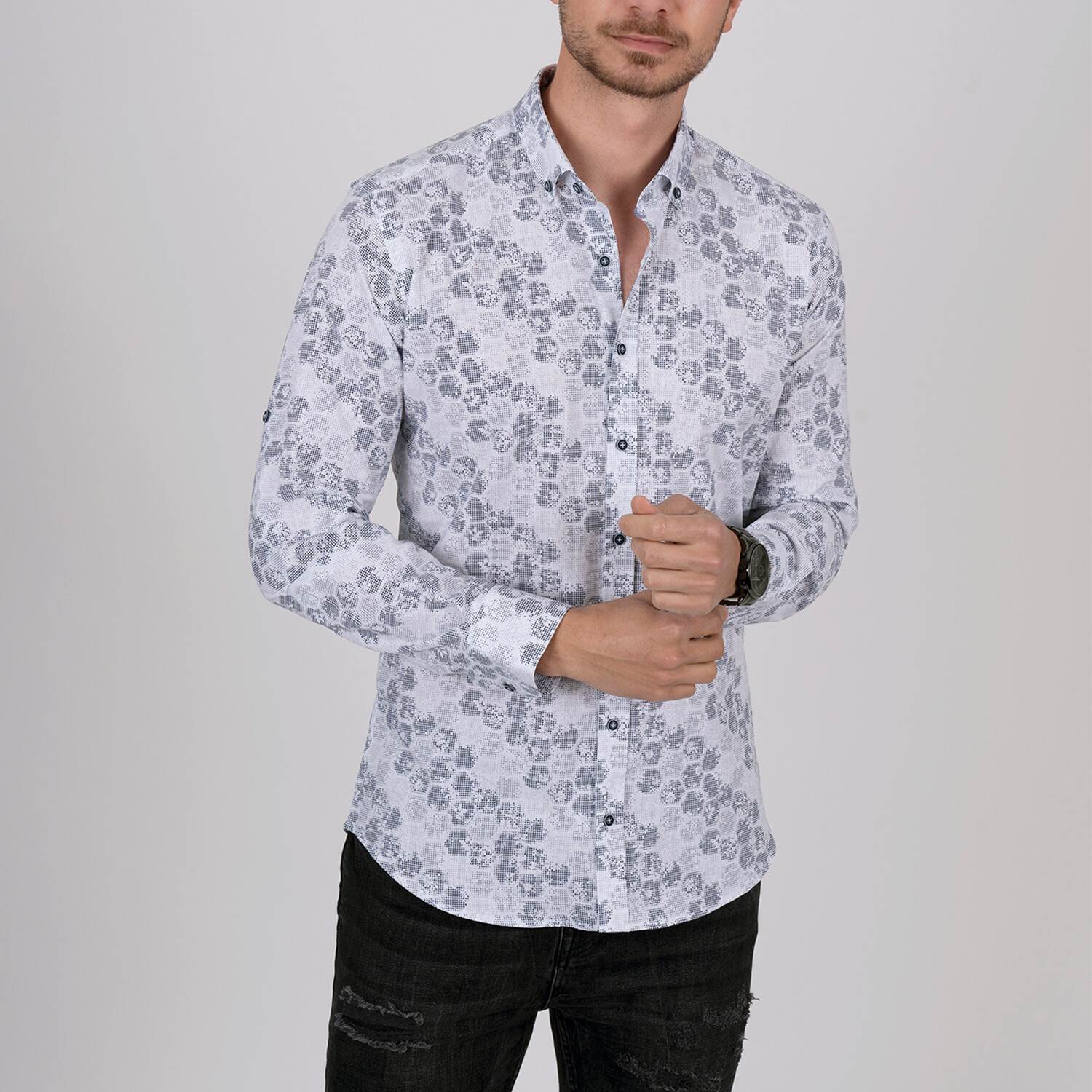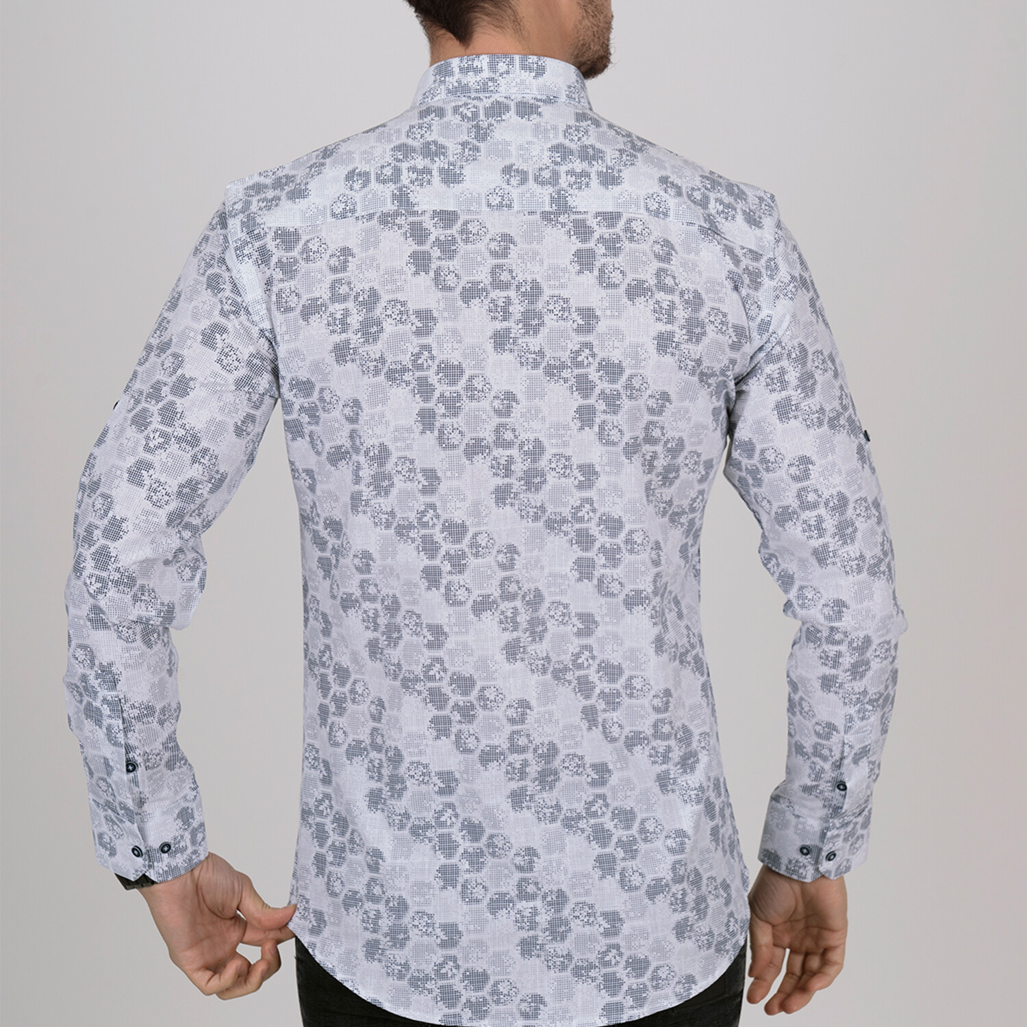 Honeycomb Slim Fit Shirt // White + Gray