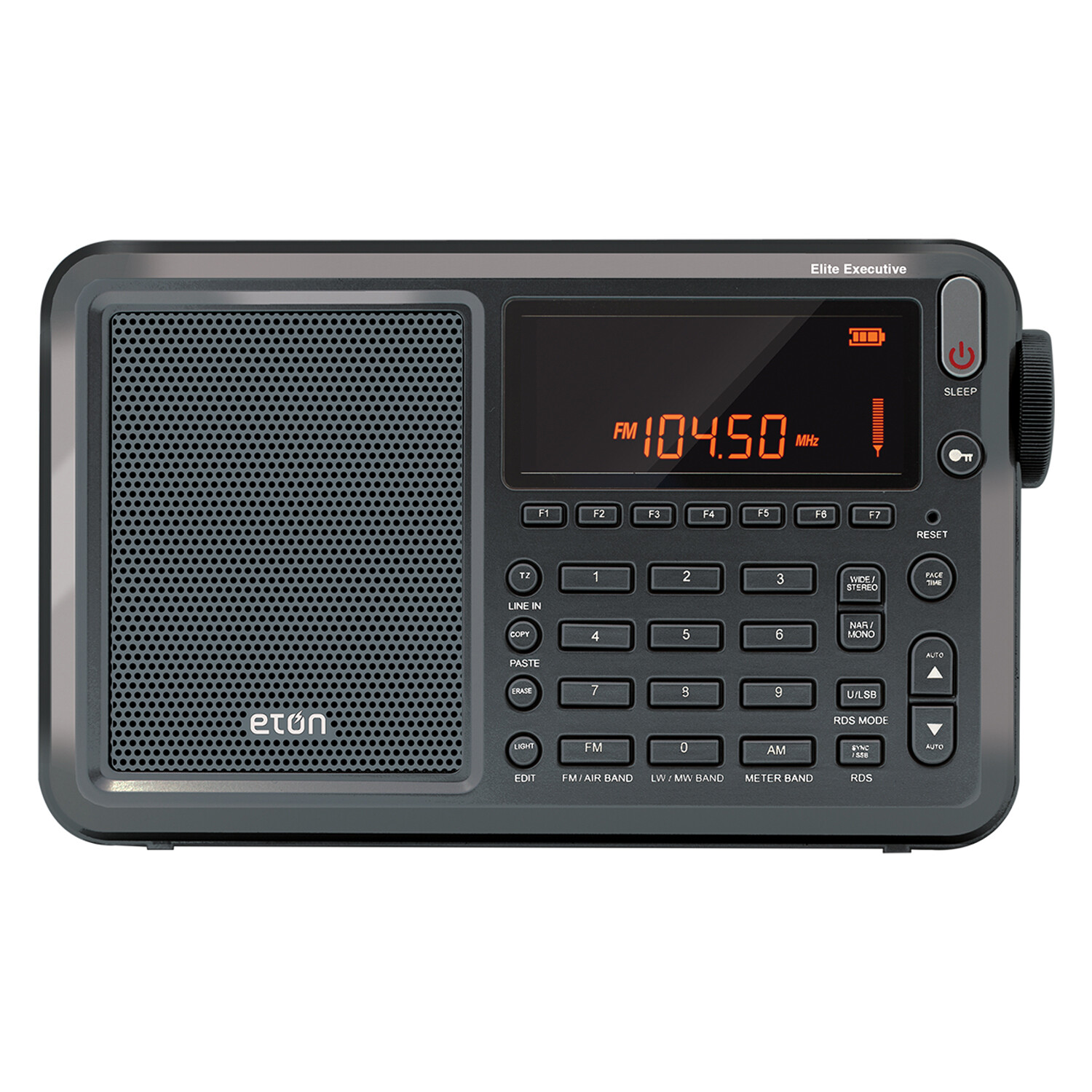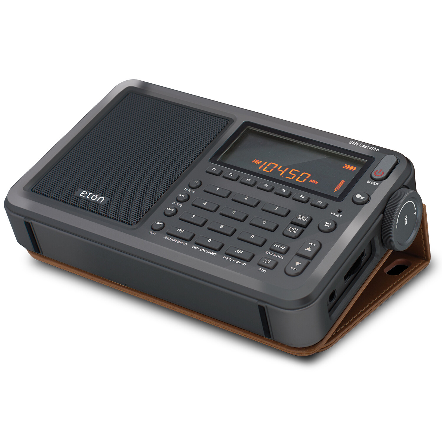 The portable Elite Executive radio is an excellent addition to your next camping trip and a must-have in case of emergency. It receives every radio wavelength—AM(MW), FM with RDS, LW, and Shortwave (SW)—at home or abroad. Plus, it also receives VHF aircraft band, Single Sideband (SSB), and includes a PLL tuner so your AM signal is strong and clear. You can tune in to all your favorite stations with a clear view of the station's call letters on the Elite Executive's bright LCD display. The sync detector also improves sound quality by lowering distortion and fading. Wherever you might be, you'll never forget where to tune in thanks to Elite Executive's 700 station memory for all frequencies. The Elite Executive also features local and world time settings, radio and buzzer alarm clock settings, sleep timer, and time backup. If you want to shut out your surroundings, simply plug in your headphones. And when you're tired of the radio, you can plug in your device through the line input and listen to your preferred playlists or podcasts.