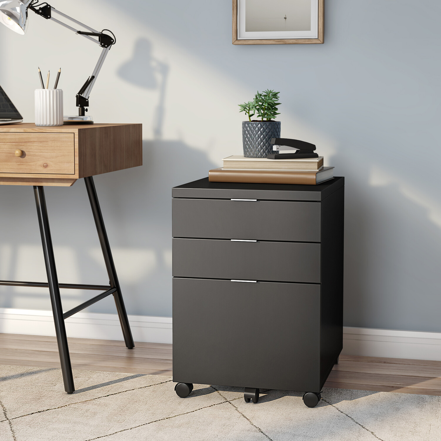 Strength and functionality come together in the Gilbert File Cabinet. This is an essential office piece that is hard-working, long-lasting, and a no-nonsense classic that really makes a statement. The five casters, two of which are locking, allow this file cabinet to be mobile. The sleek, simple silhouette is perfect for any home or office.