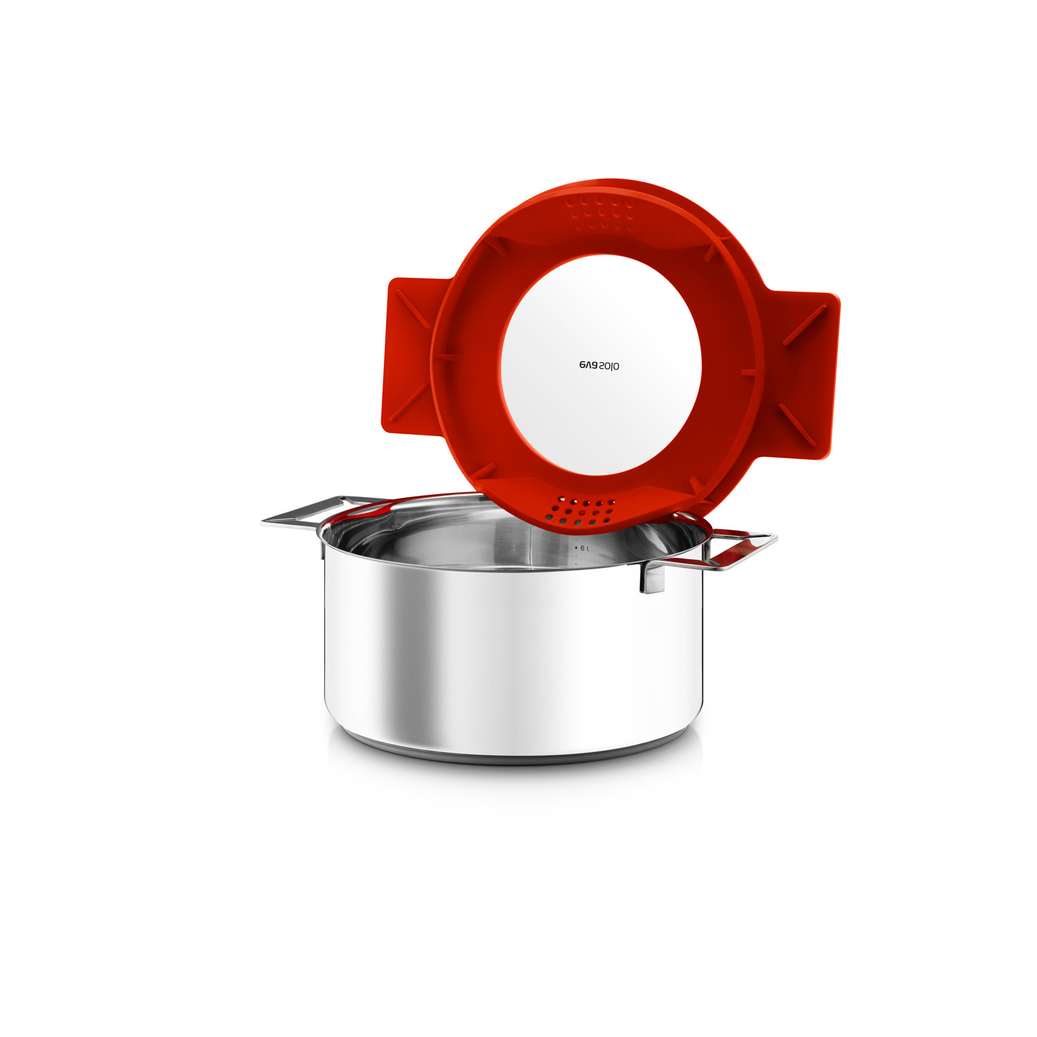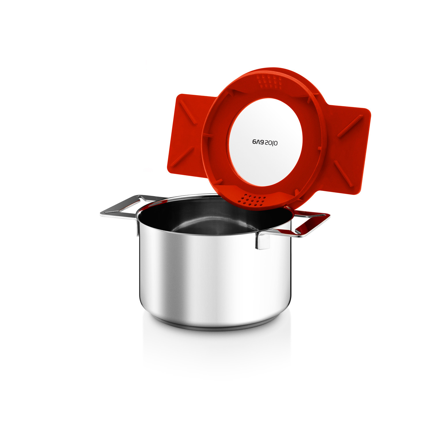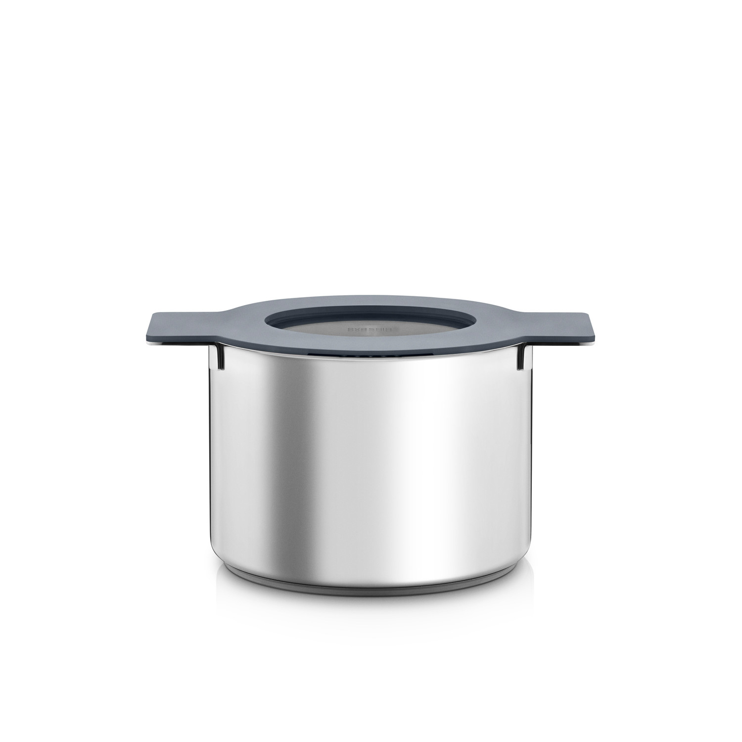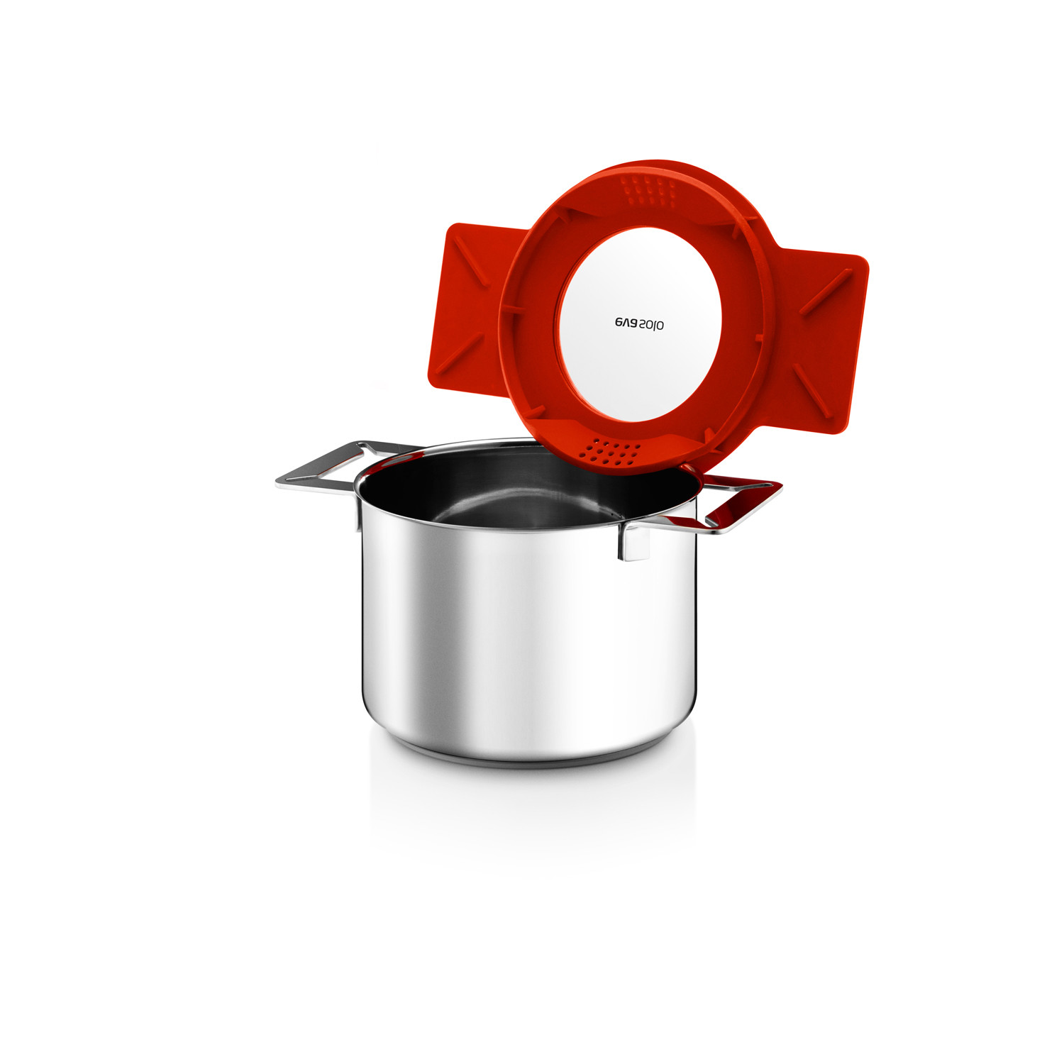 The unique lid for the Gravity pot from Eva Solo can be placed on the edge of the pot, preventing gravy and water from dripping onto the table. Thanks to the glass aperture in the lid, you can always see what is in the pot. The lid also features a built-in steam vent as well as an integrated colander, which makes it much easier to drain water when. The base of the pot is designed to ensure optimum heat distribution, while the handles do not get hot. The pot has practical inside liter markings and is easy to clean. It can even be used on all heat sources, including induction.