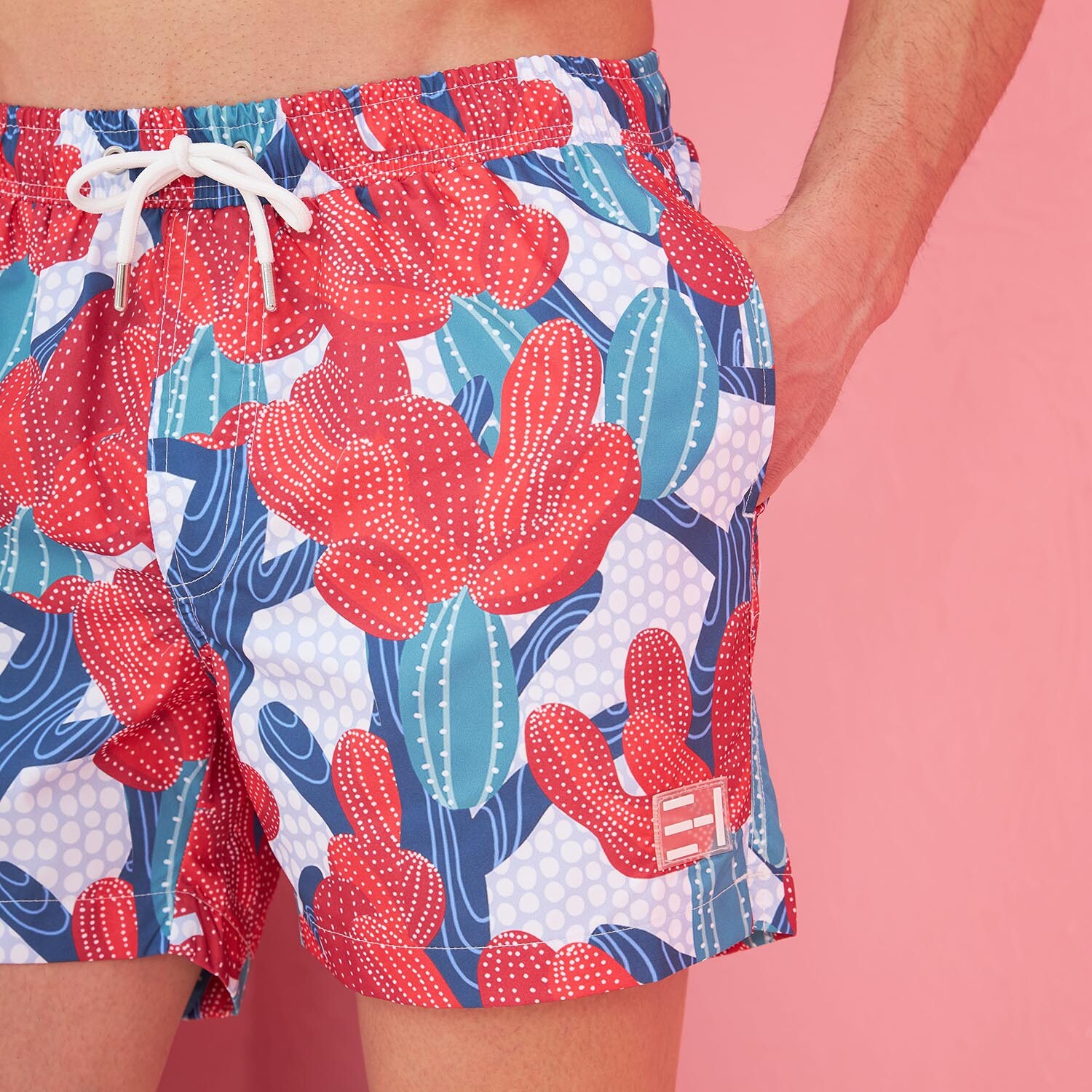 Men's Cactus Swim Trunks // Red + Multi