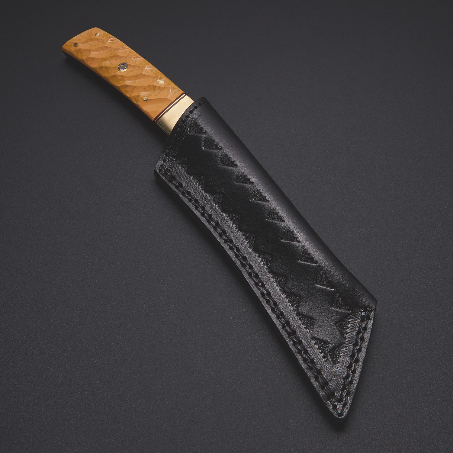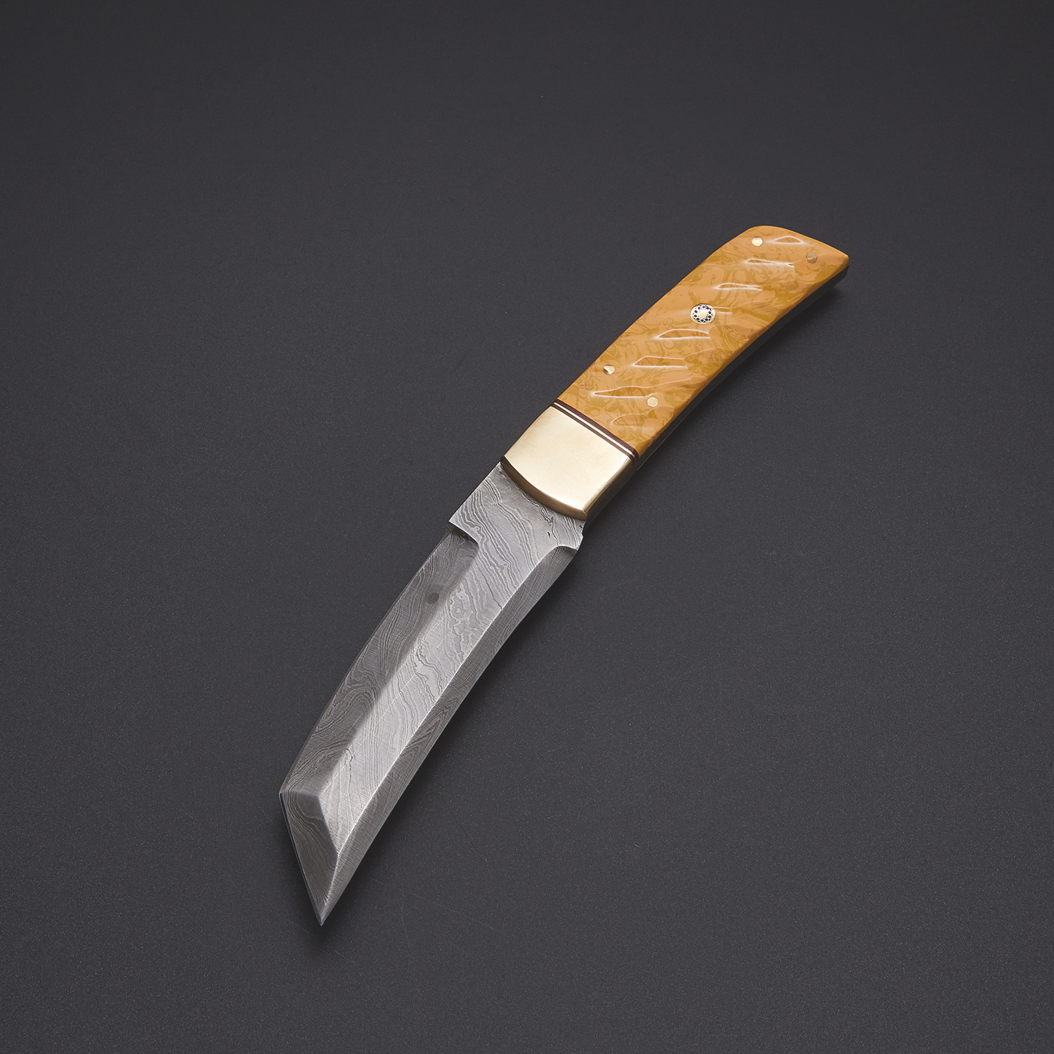 The Tanto was the short sword of Japan's samurai, ready at a moments notice and often ornately decorated. This knife from Evermade Traders pays homage to that historic lineage, with a beautifully crafted Damascus steel blade and subtle embellishments.