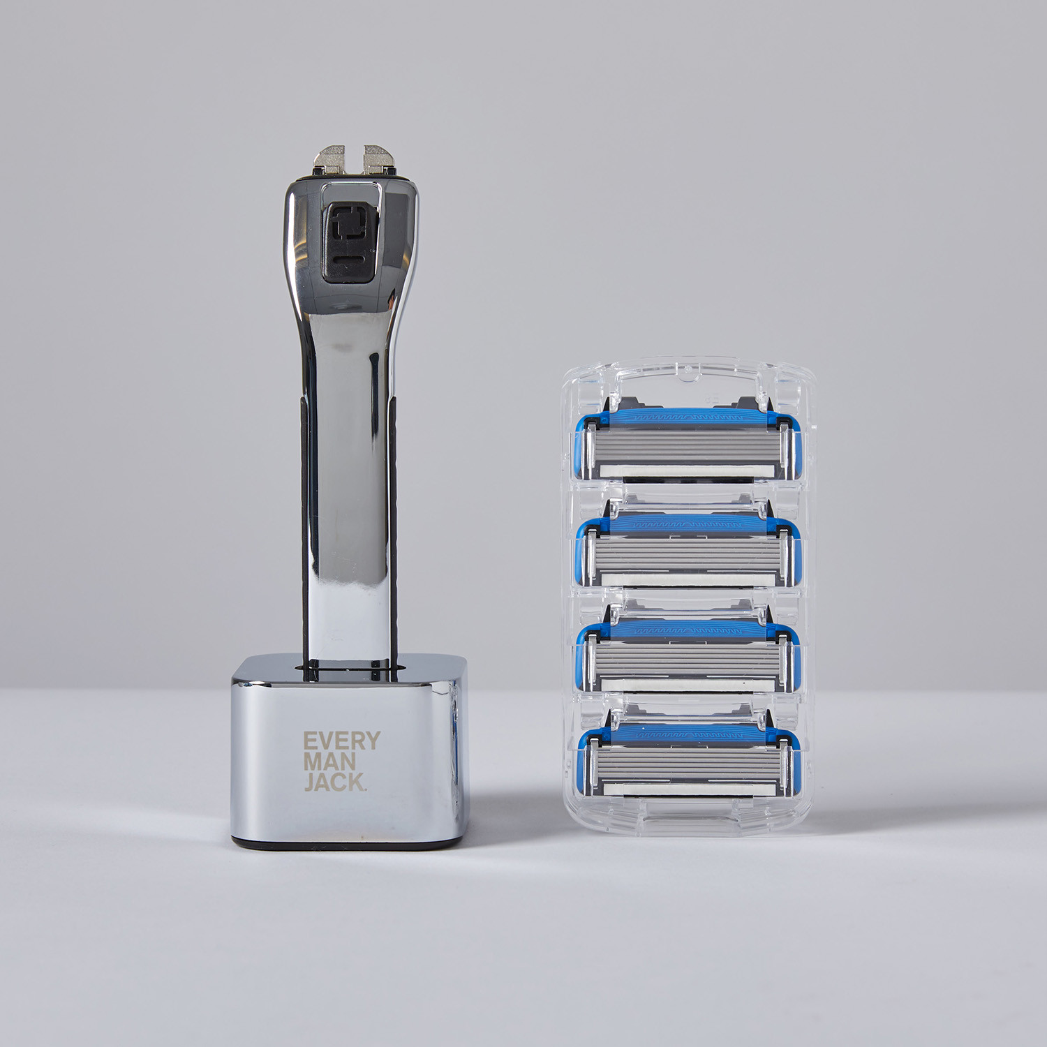 Inside the Manual Razor + Stand Shave Set, you’ll find your new razor, a display stand, and 8 cartridges, to last you up to 3 months. Made for the discerning shaver, each cartridge is mounted with 6 long-lasting, easy-to-rinse blades, and the open flow design allows hair follicles and shaving cream to pass through cleanly, eliminating corrosion and extending blade life. A lubricating strip with Olive Oil, Chamomile and Herbal Extract moisturizes, soothes, and — along with the aloe, Vitamin E, and Vitamin B5 brushless shaving cream — protects even the most sensitive skin, so you look and feel your best.