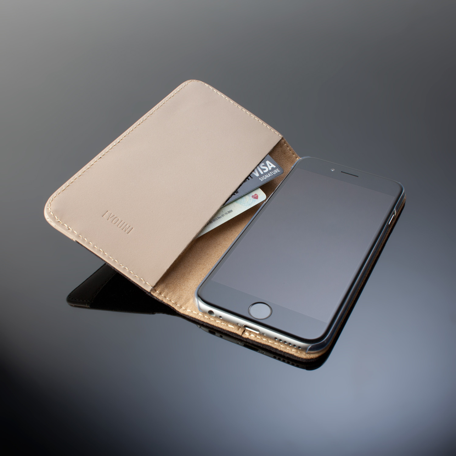 This elegant wallet encases and protects your iPhone, all while keeping your cards and change handy. With a built-in stand function that allows you to view your iPhone 6 or 6 Plus at various angles, a durable, dyed Japanese nano twill exterior, and a large interior pocket for storing your essentials, it reduces what you have to carry around to a minimum â and does it stylishly.