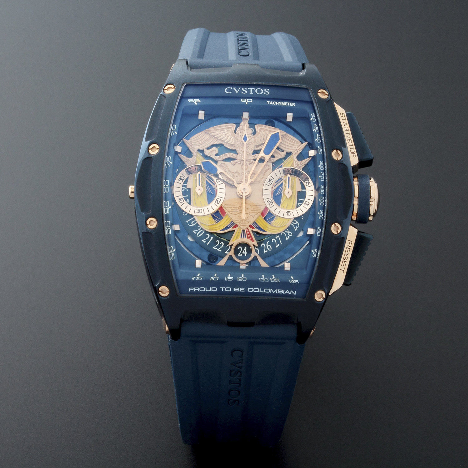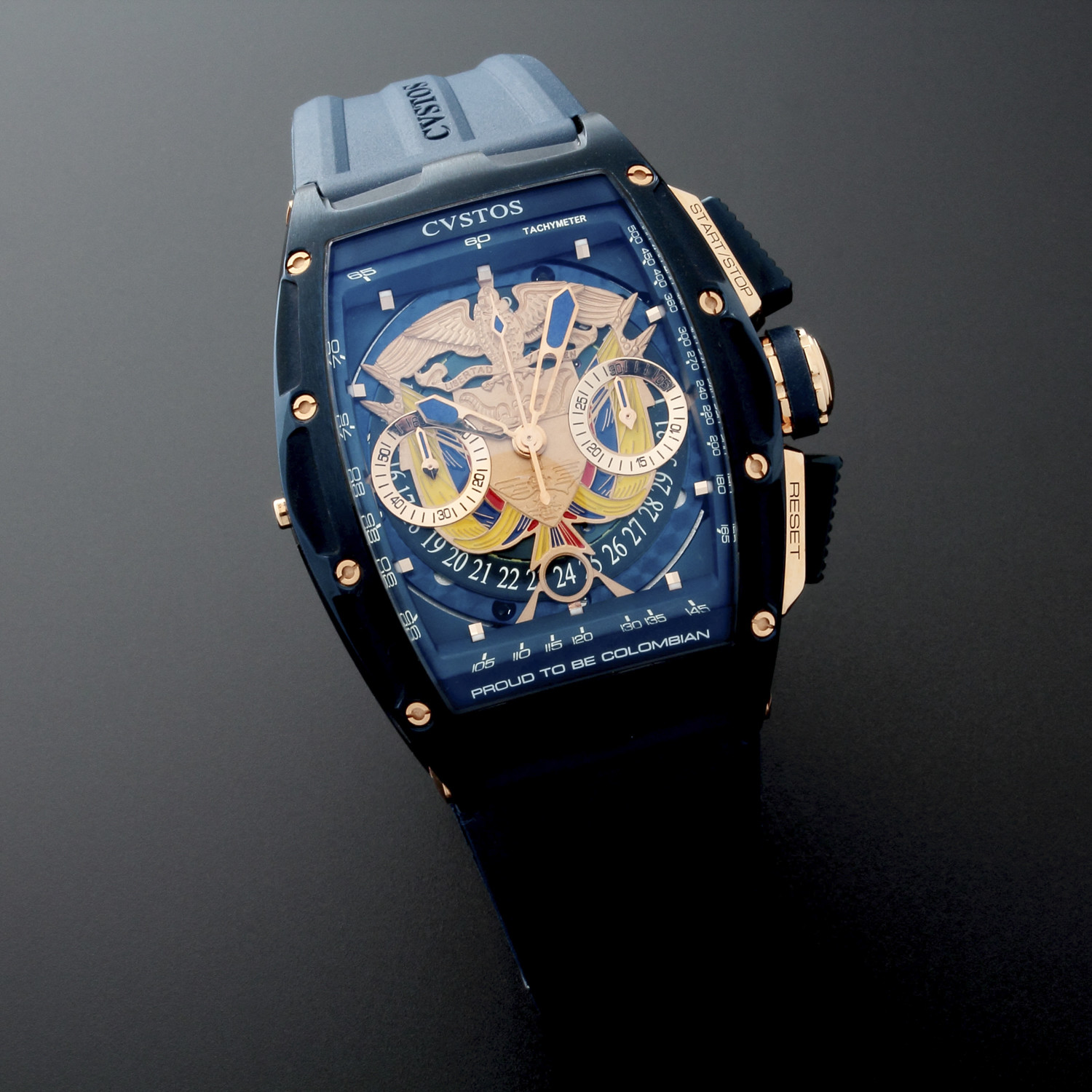 Ever since its launch in 2005, CVSTOS, with its distinctive high-tech approach to exclusive watchmaking, has boldly risen to the challenge of creating a pioneering style and a new market demand. Always a step ahead of time, CVSTOS, the avant-garde benchmark in high-end watchmaking, anticipates current trends, relentlessly pursuing growth by doing today what others will do tomorrow. This Cvstos Challenge Pride Of Colombia Automatic is an alternative to the everyday for the exceptional man.