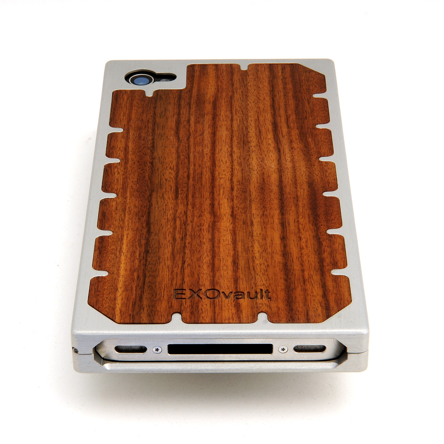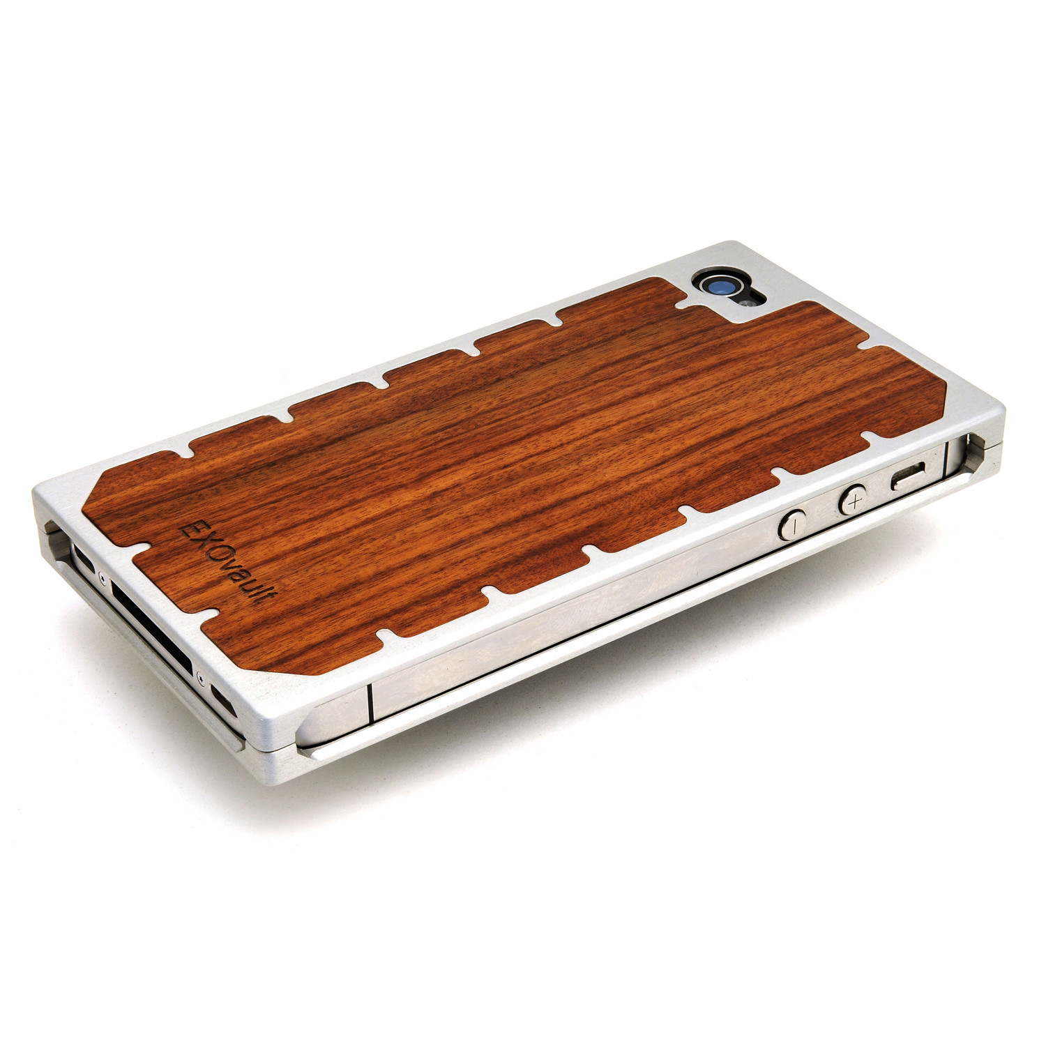 This scratch-resistant, aluminum and silver iPhone case is one of EXOvault’s most modern and edgy designs. Rocking a look like something from outer space, this piece possesses a hinged design that allows for tool-free access to your device. The front also provides maximum protection, ensuring your lifeline doesn’t shatter to pieces. Lastly, an elegant wood backside also provides a soothing contrast.