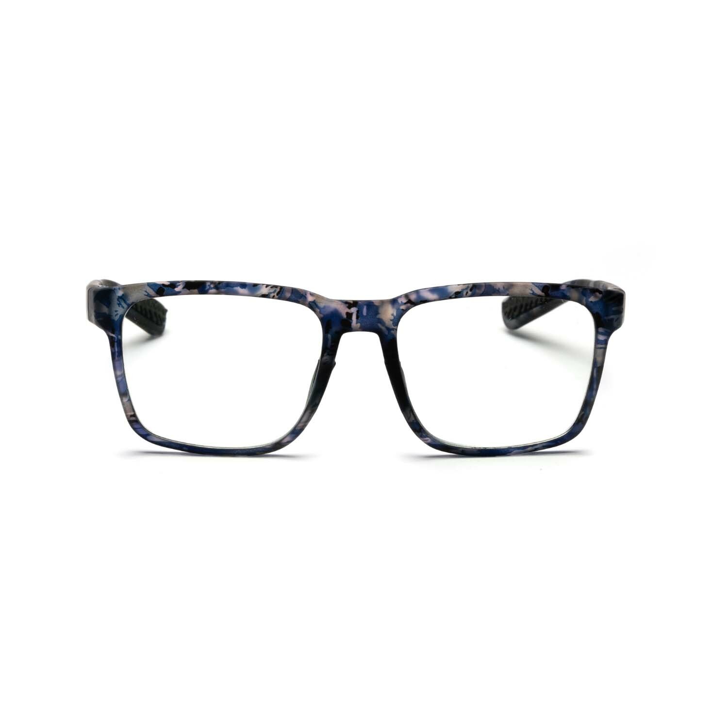 Unisex // Rubberized Square Blue Light & Reading Glasses // Matte Blue & Black Camo