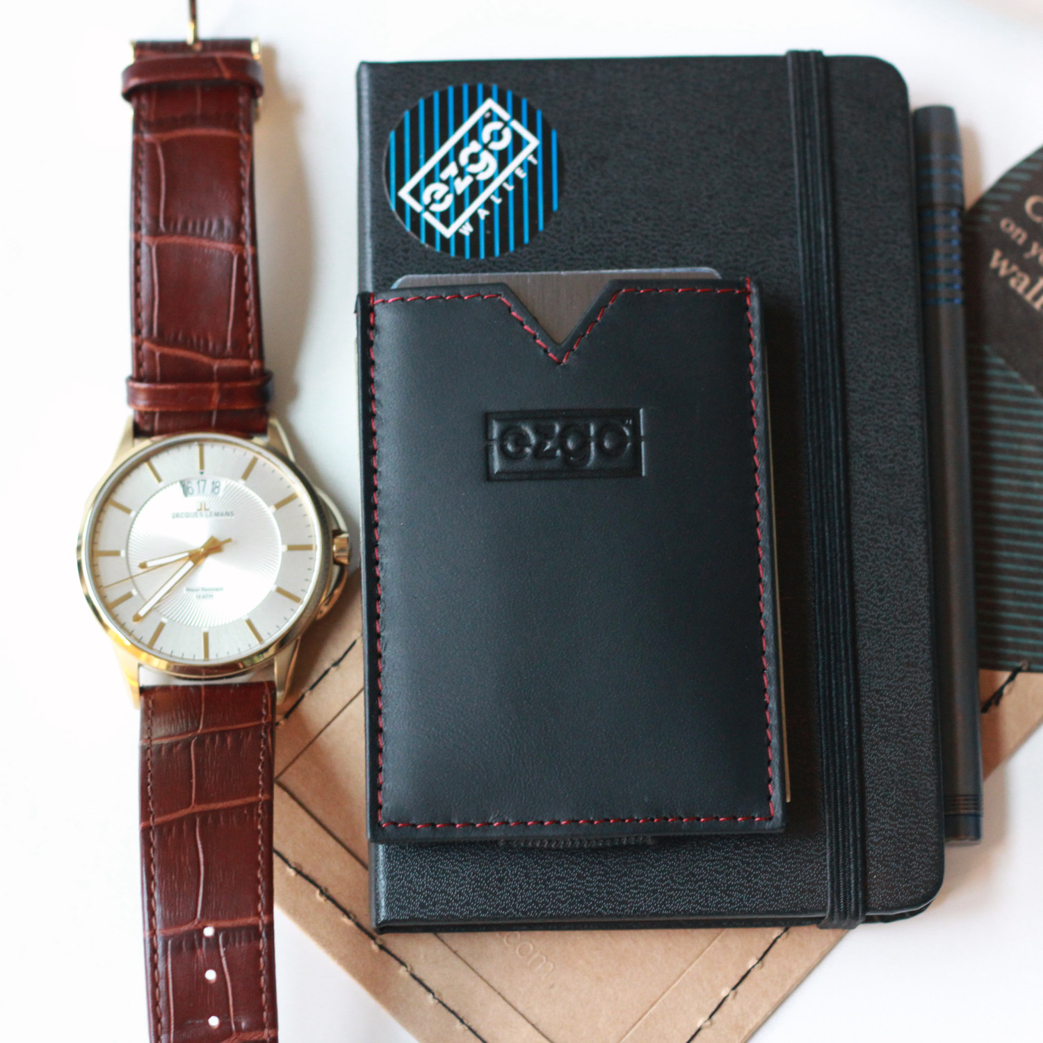 The Slim Black Ninja EZGO is a modern, buoyant, slim and lightweight wallet made of premium leather and designed with no moving parts, for easy access to cards, cash, digital media and more. Plus, an electronic feature allows for the NFC microSD card capable of receiving and recording electronic receipts and accessing hotel rooms. It's as light as a US quarter and as thin as three of your credit cards, but expands to all of your daily needs.