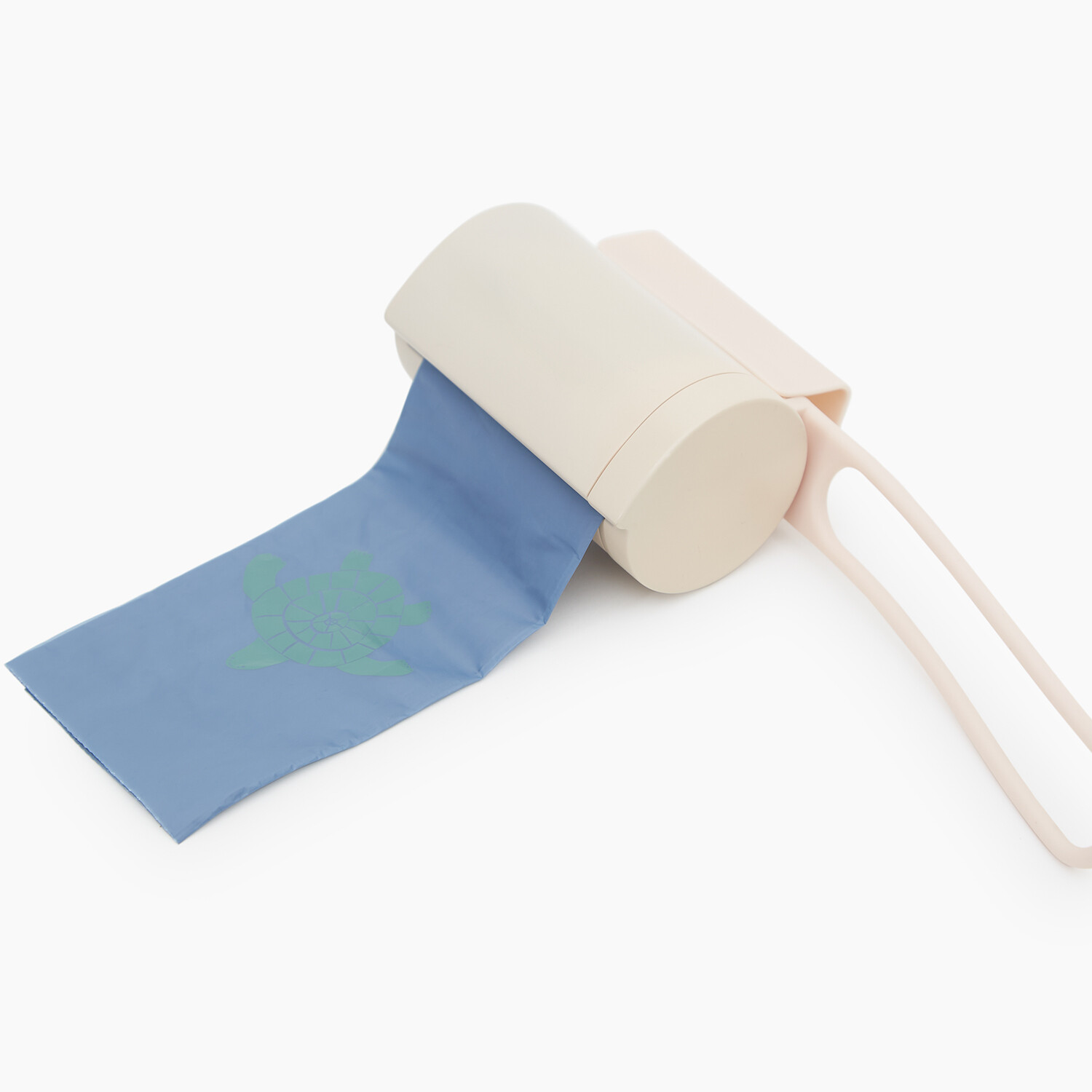The waste bag holder features a lay-flat design with dual attachment points to secure to a leash and prevent swinging, a patent-pending bag separator tab for one-handed dispensing, a spin control system to hold the roll in place, and a twist-lock cap. It comes with 3 rolls (45 bags) of our premium textured, one-handed opening waste bags
