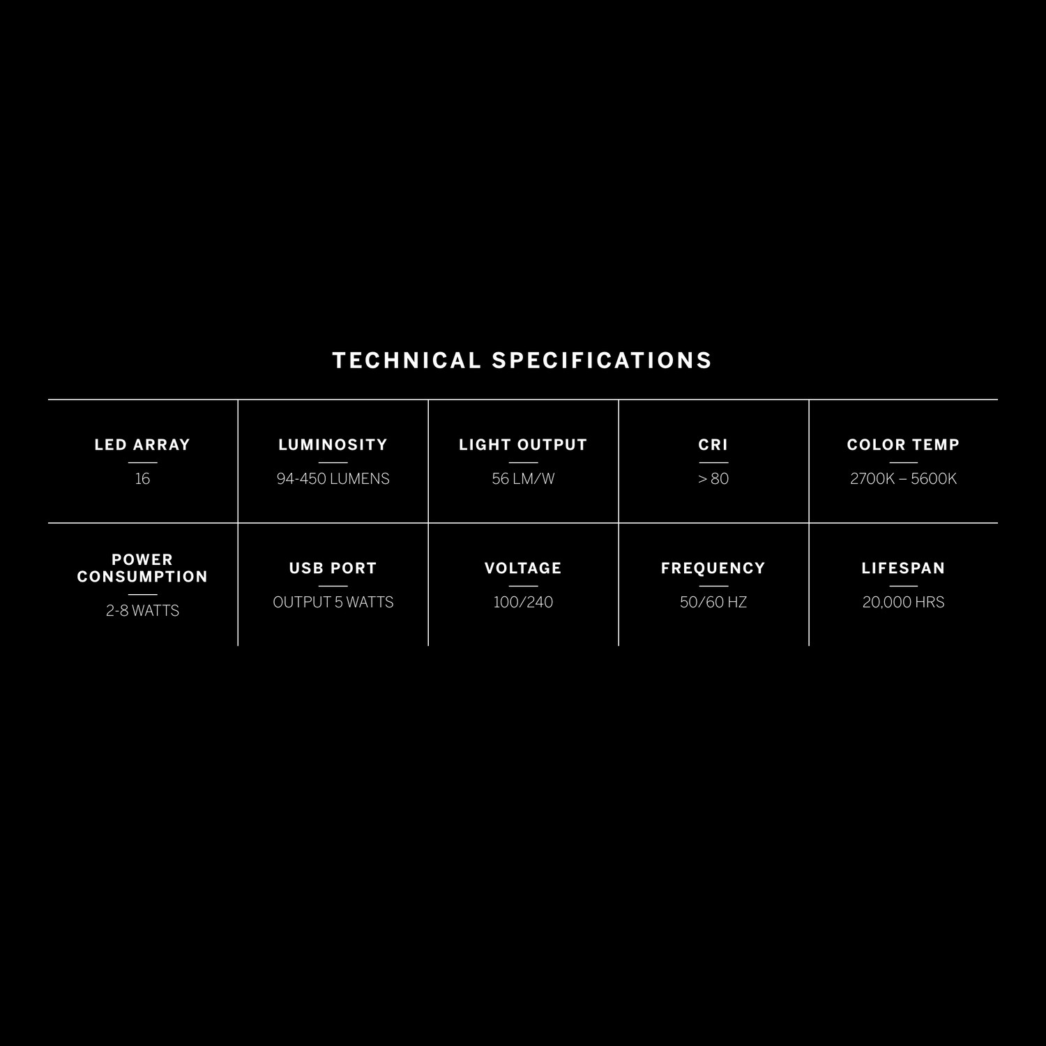 It's fully adjustable for the perfect position, and you can even adjust the brightness and color temperature. Best of all, the USB port in the base lets you change your devices right on your desk or table, without looking for an extra outlet.