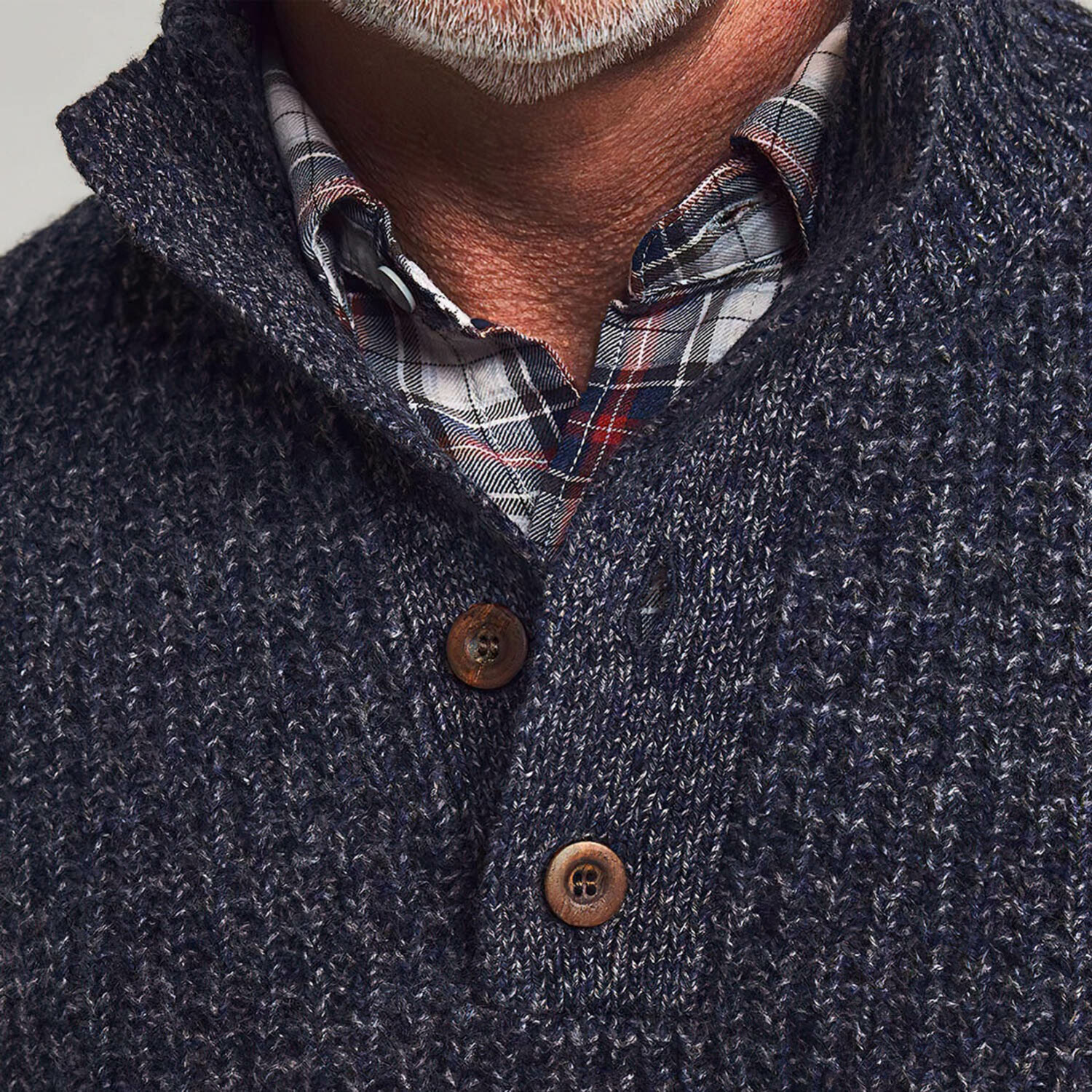 Cashmere Wool Waffle 1/4 Button // Denim Melange