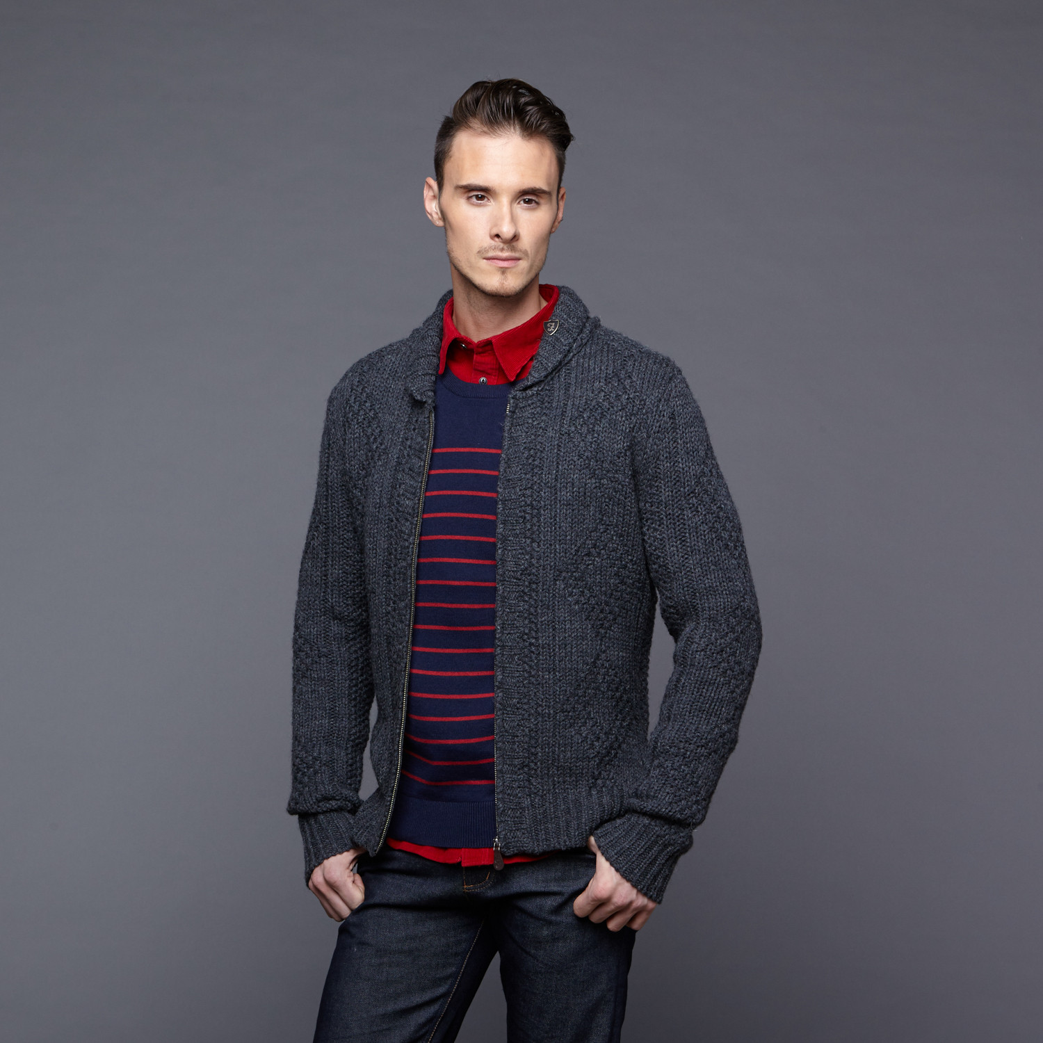 This Aspinall Wool Knit Zip Sweater is a perfect Winter staple. Done in a thick, diamond-knit wool, with a zip closure, shawl collar, and corduroy elbow patches, it will get you through months of cold weather with East Coast style and ease.