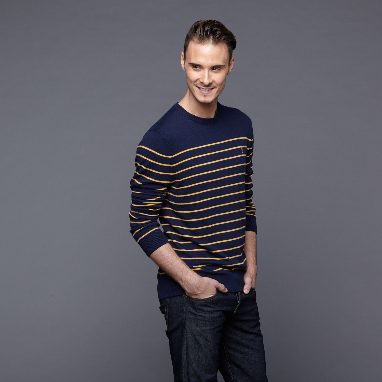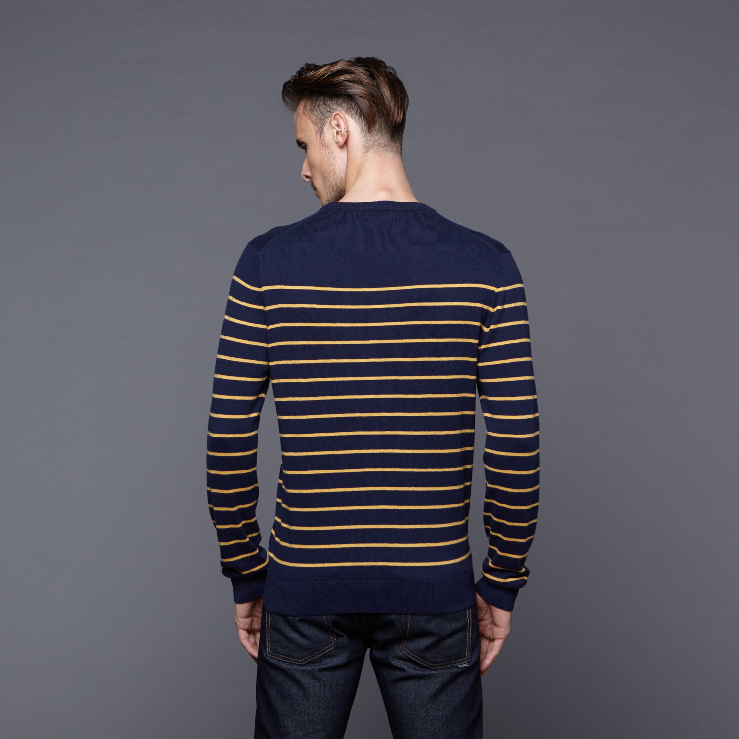 This Jefferson Crew Neck Sweater is a perfect Winter staple. Done in a knit wool, with horizontal stripes and the signature embroidered "F" at the chest, it will get you through months of cold weather with preppy style and ease.