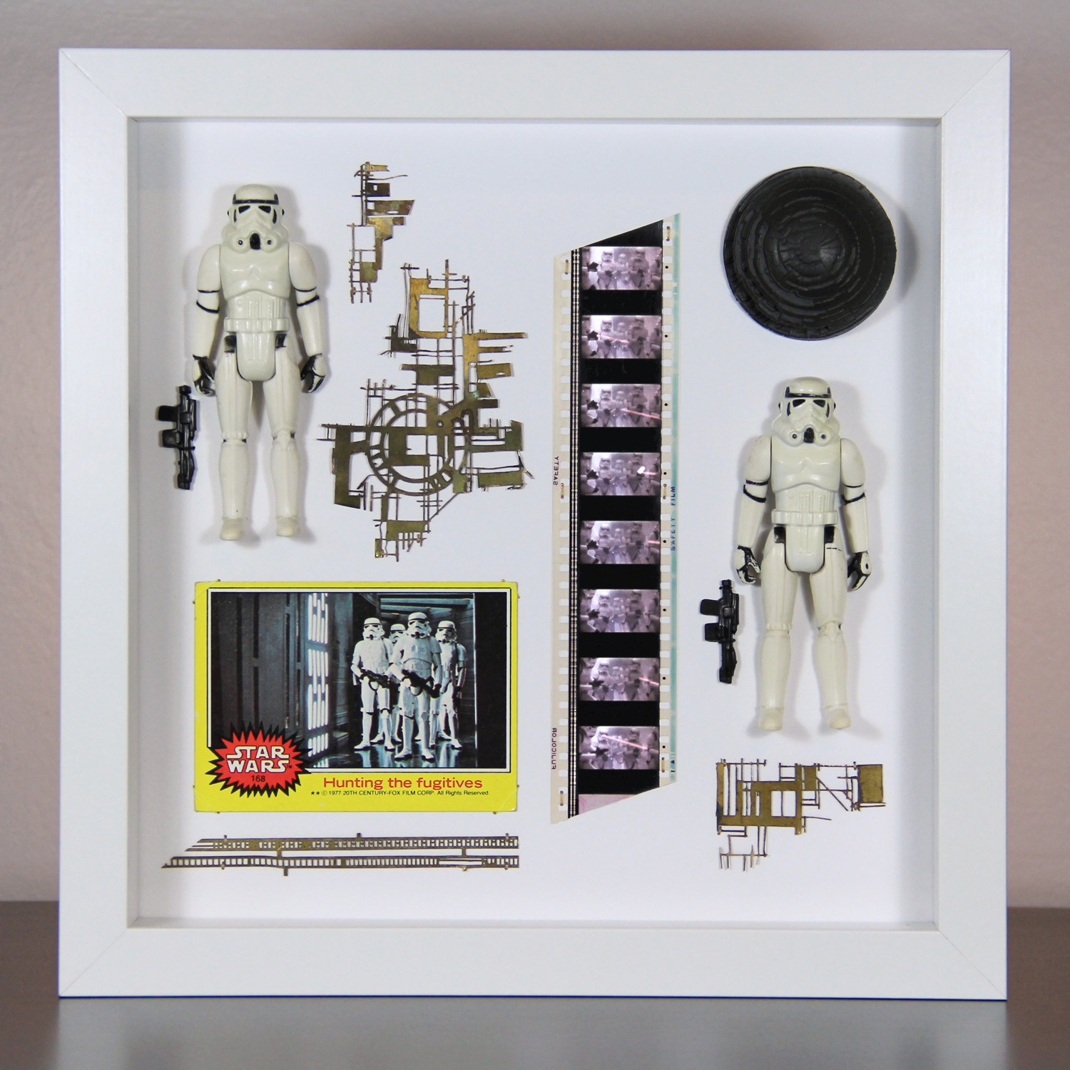 Handcrafted using treasures and rarities from the Star Wars universe, Faraway Vintage displays feature selections of screen-used props, set decoration swatches, film location elements, vintage Kenner action figures, Galoob Micro Machines, original Topps trading cards, and first-run 35mm film.