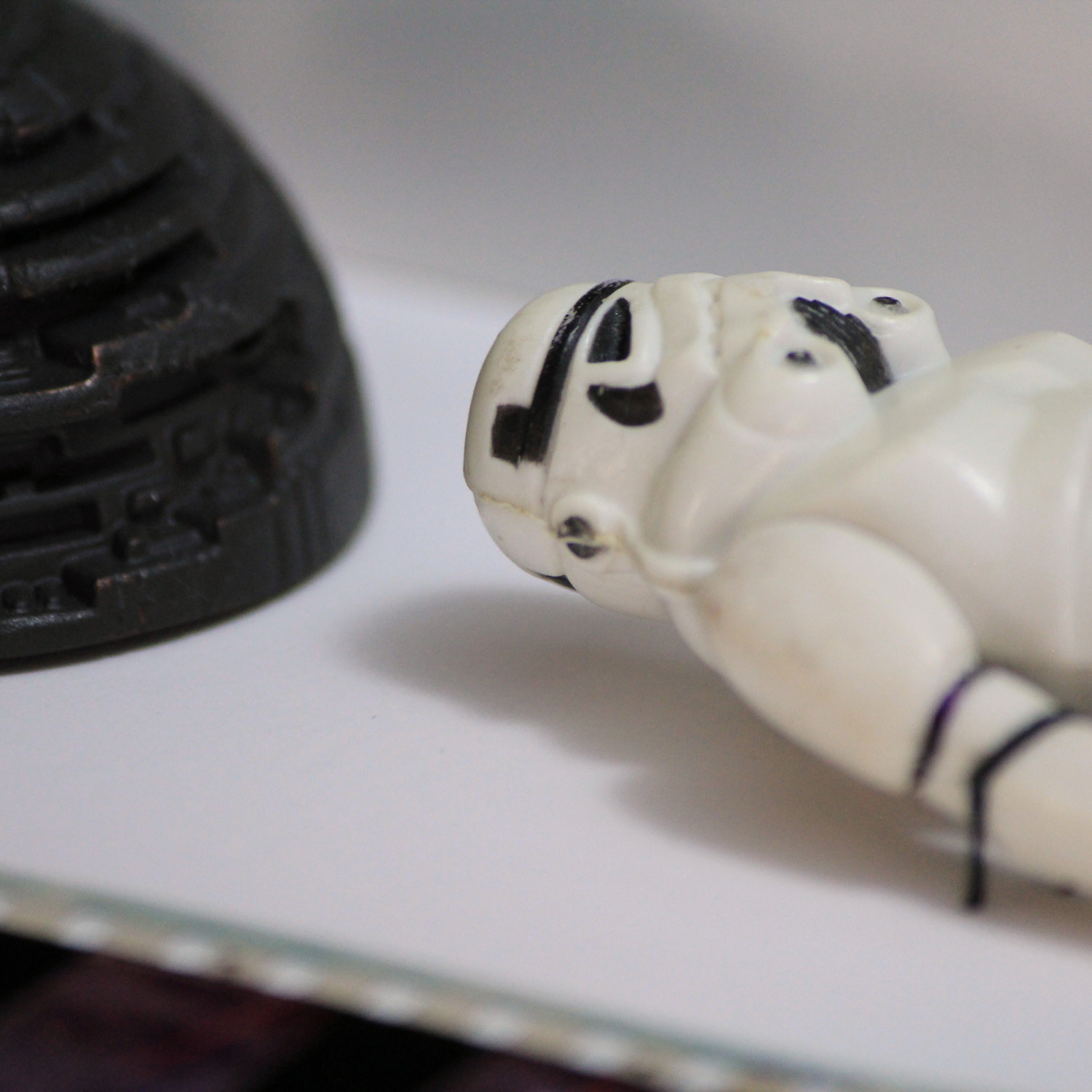 This display features vintage Stormtroopers, more Stormtroopers, and then a few more Stormtroopers, surrounded by four large metal Death Star II sections that were pulled from the ILM model shop almost four decades ago.