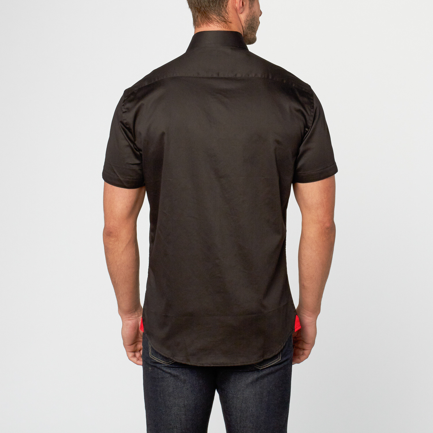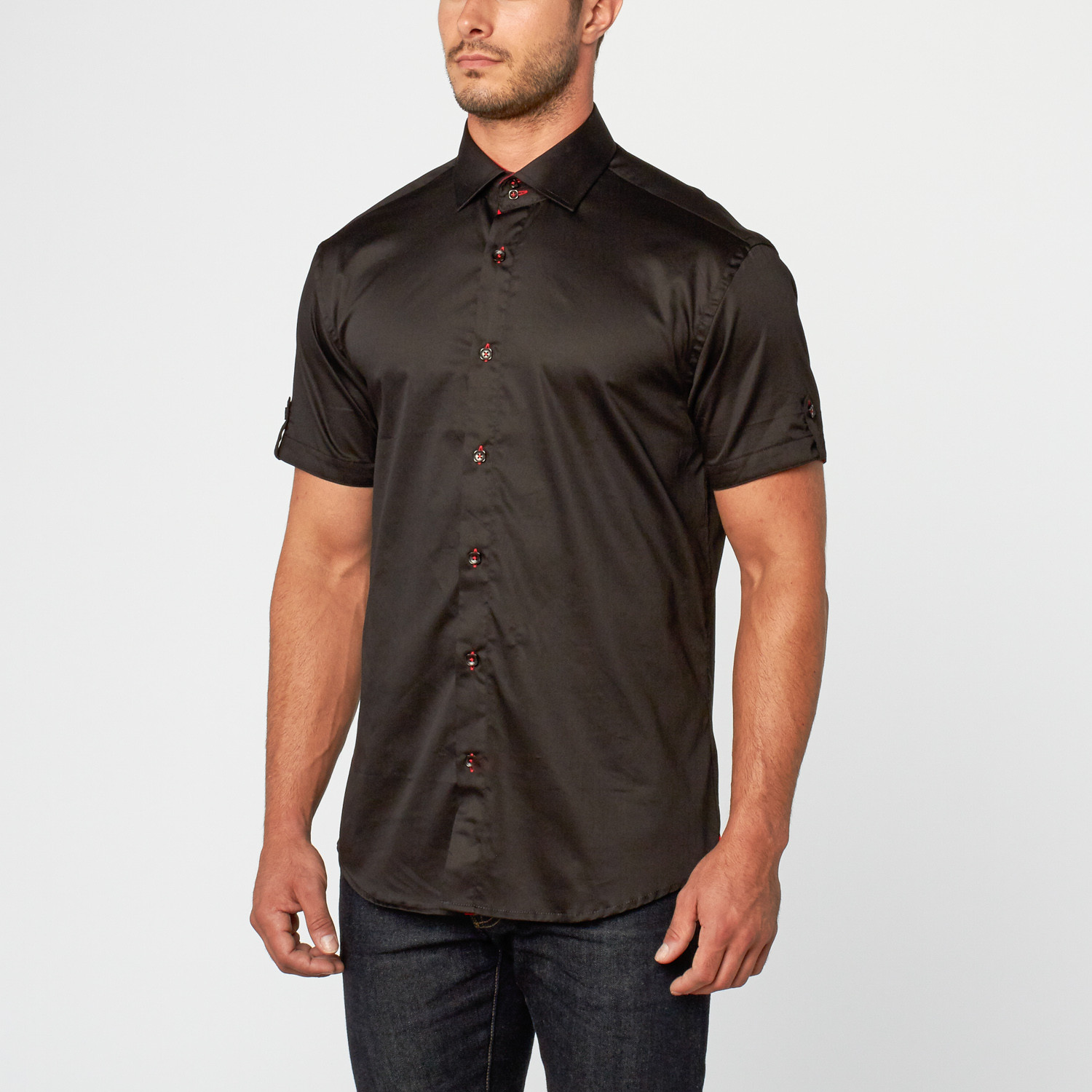 Bespoke // Marcus Short Sleeve Sateen Button-Up // Black (3XL)