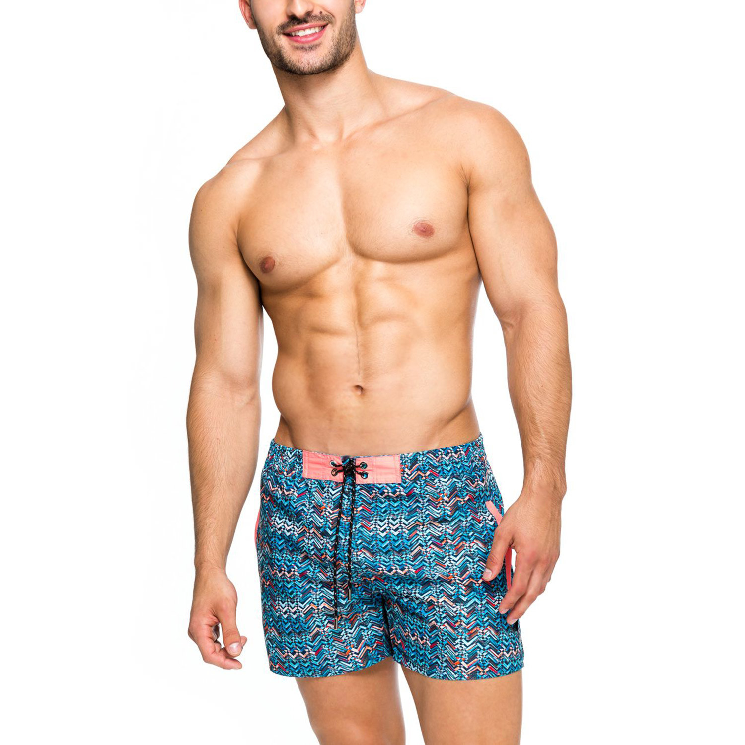 Draw eyes — and compliments — in the Marine Swim Short. Featuring a striking aquarium-inspired allover print and bold coral accents, this suit is bound to be the talk of the tropics.