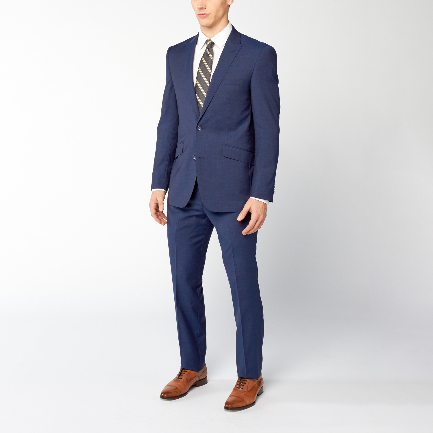 This 2 Piece Slim Fit Suit is all you'll need for your work wardrobe, and will provide you with the separate blazer and pant to supplement the rest of your look. Done in a finely striped wool with angled waist pockets, you'll love how dapper it makes you look — and feel.