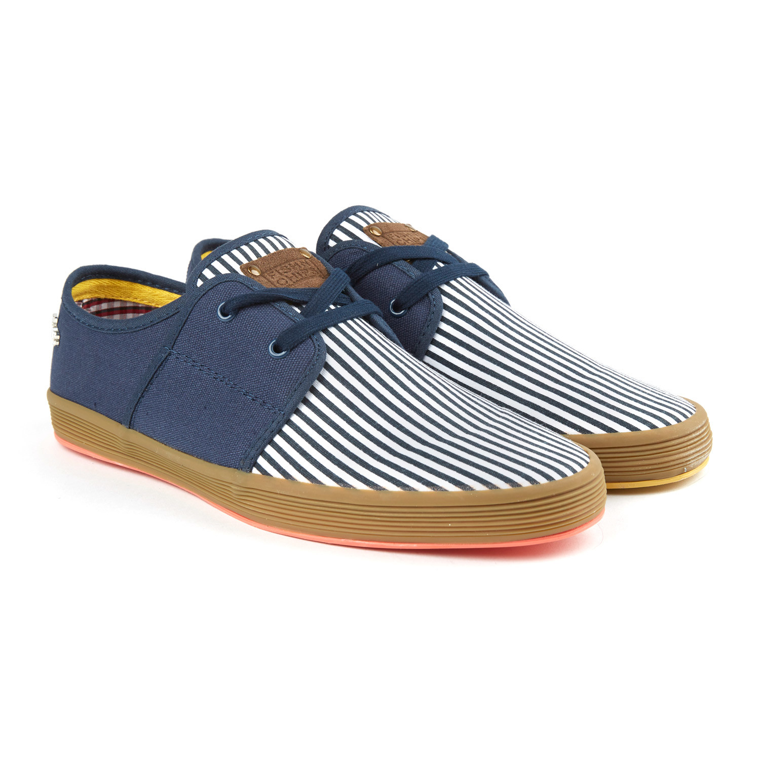 Fish ‘N’ Chips signature casual men’s shoe, the Spam 2 Sneaker has been updated for the season with a woven finish on the uppers. A two-hole lace fastening provides a secure and comfortable fit, while a Fish ‘N’ Chips branding label on the tongue reveals the maker’s mark.