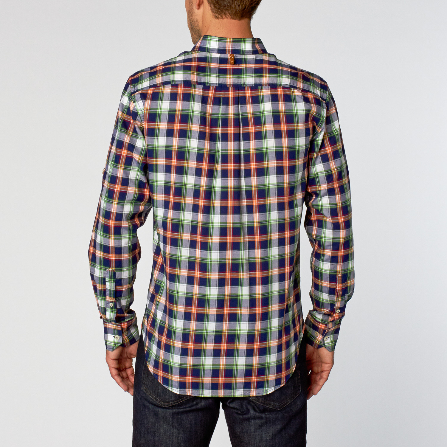 You+Shirt // Newton Plaid Casual Shirt // Navy + Orange + Green (M)