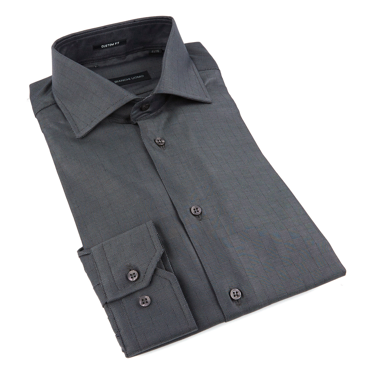Bianchi Uomo Dress Shirt // Black + Grey Herringbone Print (US: 15.5R)