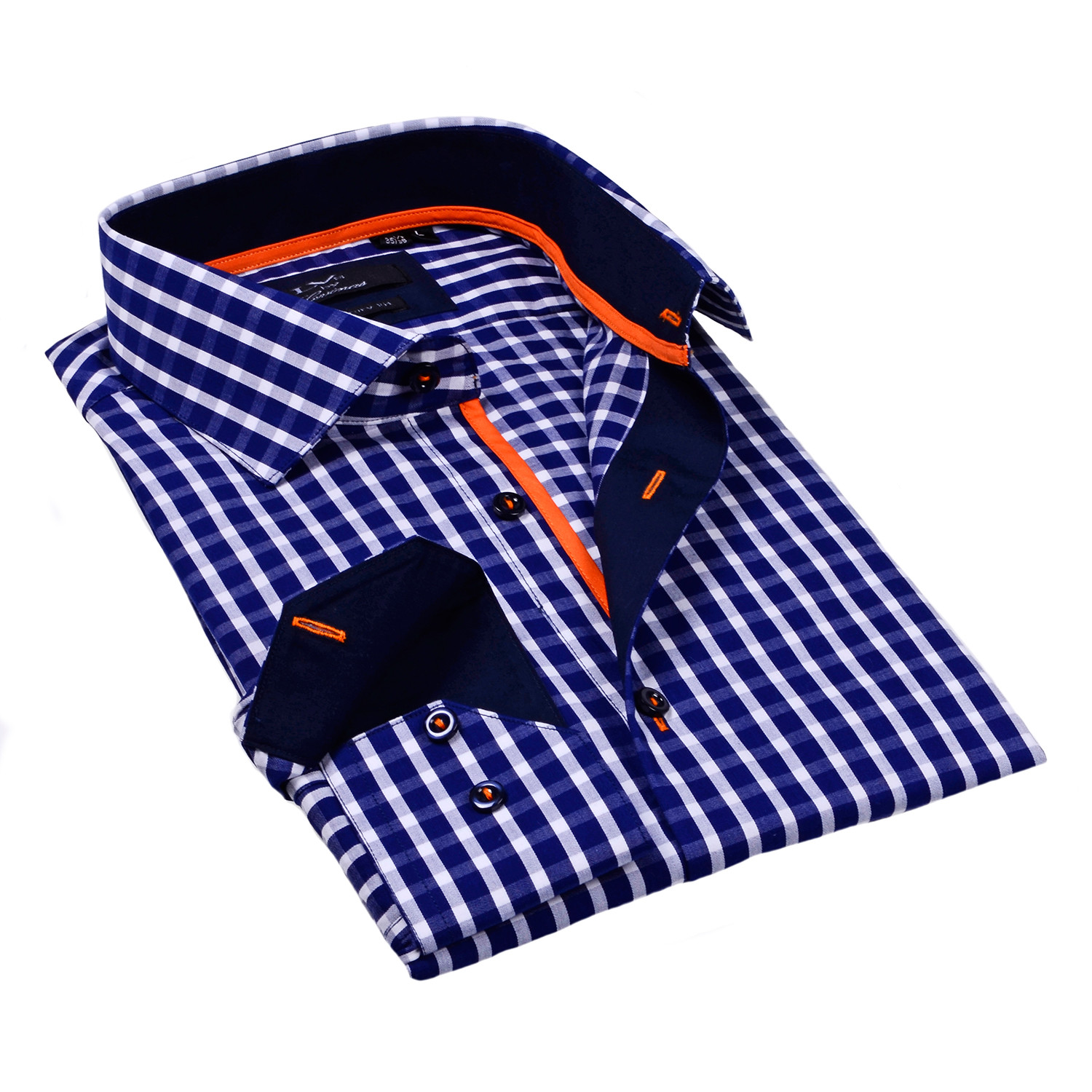 Classic Button-Up Dress Shirt // Navy Gingham (L)