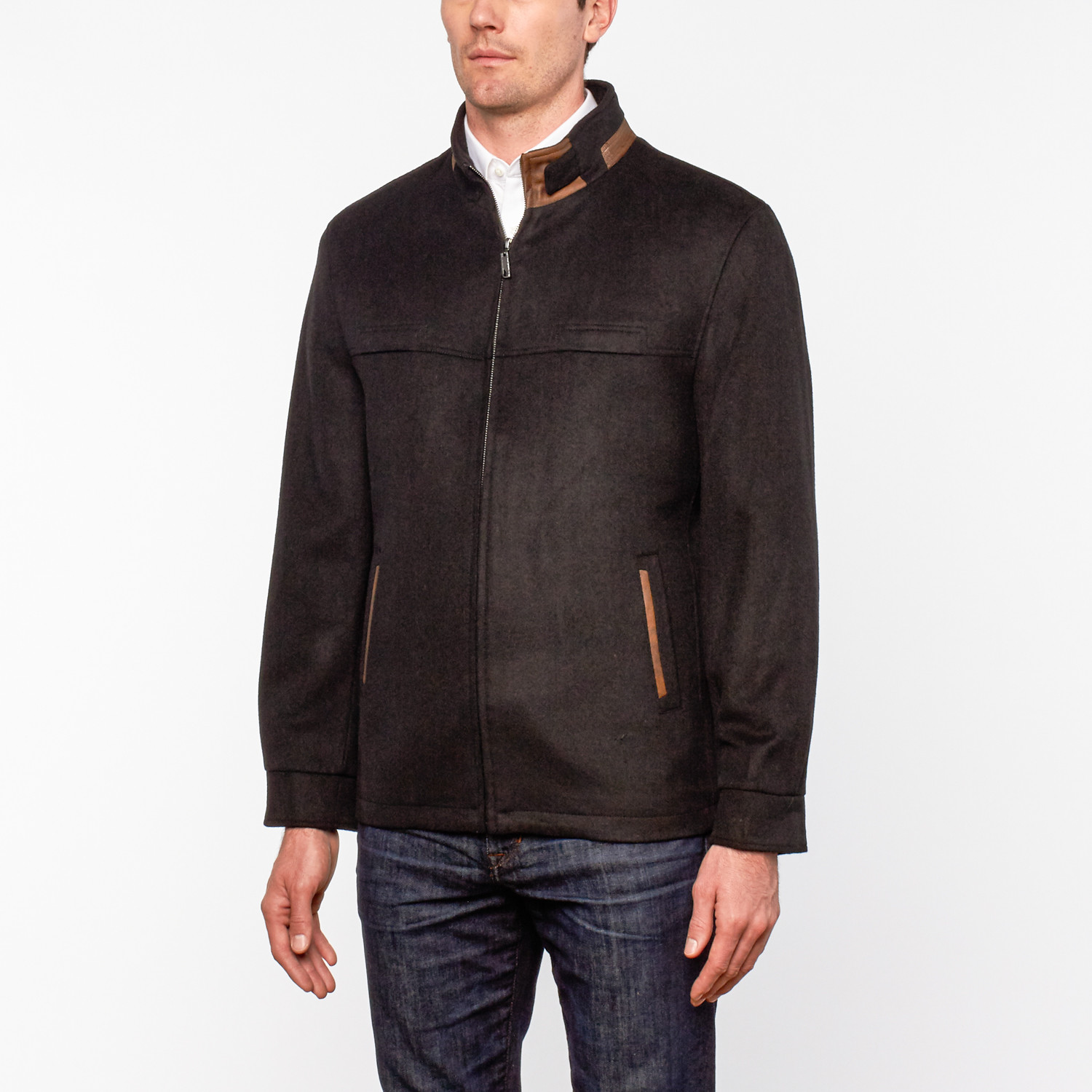 Contrast Panel Collar Zip-Up Coat // Black (M)
