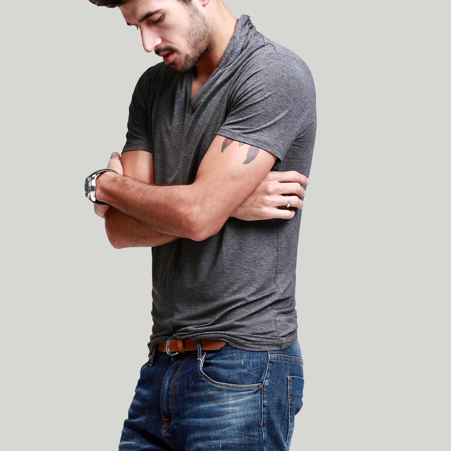 Deep V-Neck Tee // Dark Grey (L)