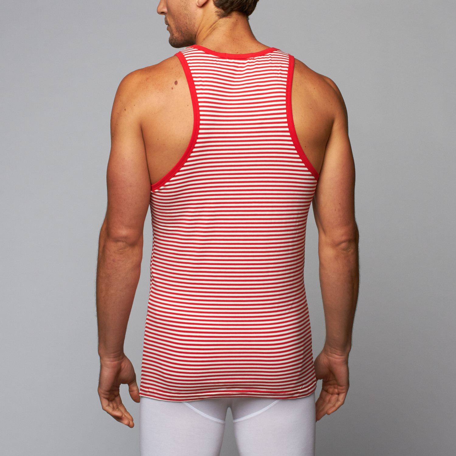 Get those guns out in James Tudor's Regal Tank, made using a stretchy cotton spandex to accentuate your physique. This tank incorporates a mix stripes with block contrasts.