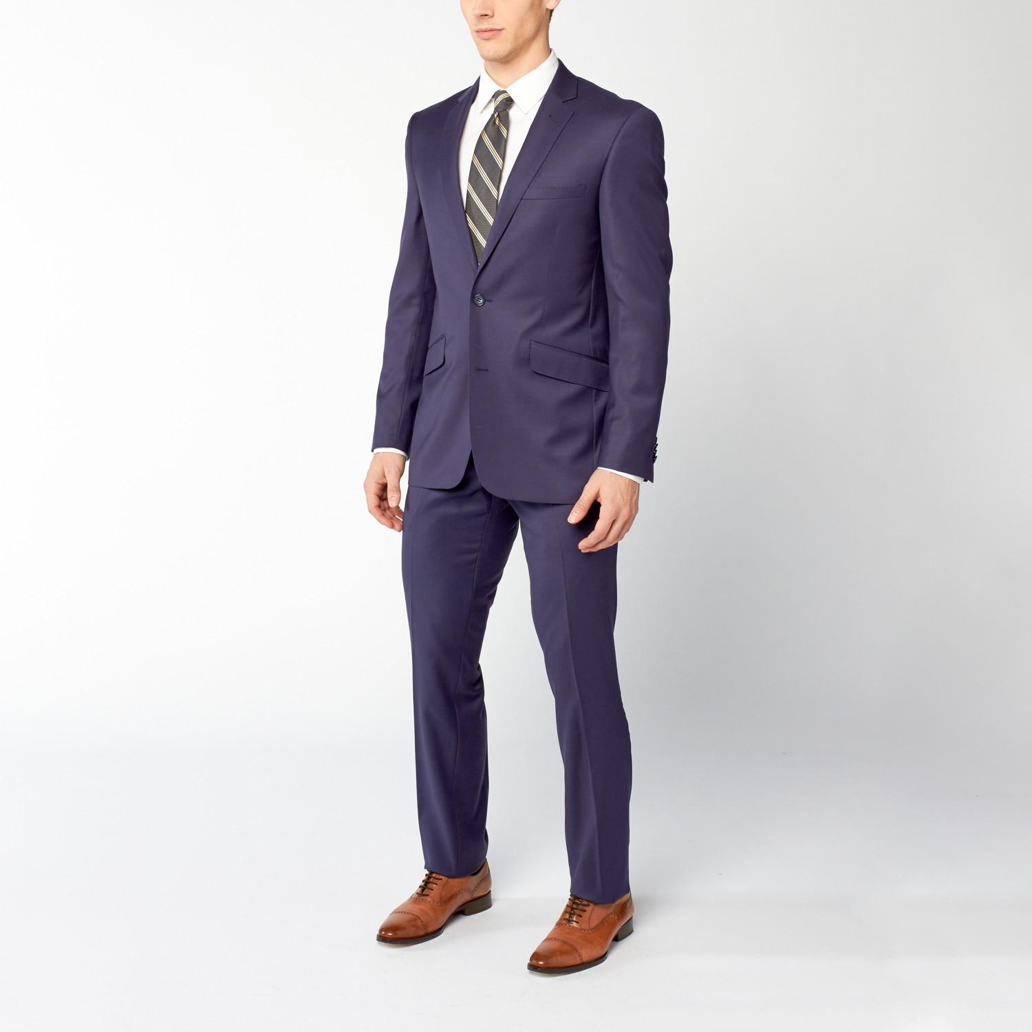 This 2 Piece Slim Fit Suit is all you'll need for your work wardrobe, and will provide you with the separate blazer and pant to supplement the rest of your look. Done in a navy wool gabardine with angled waist pockets, you'll love how dapper it makes you look — and feel.