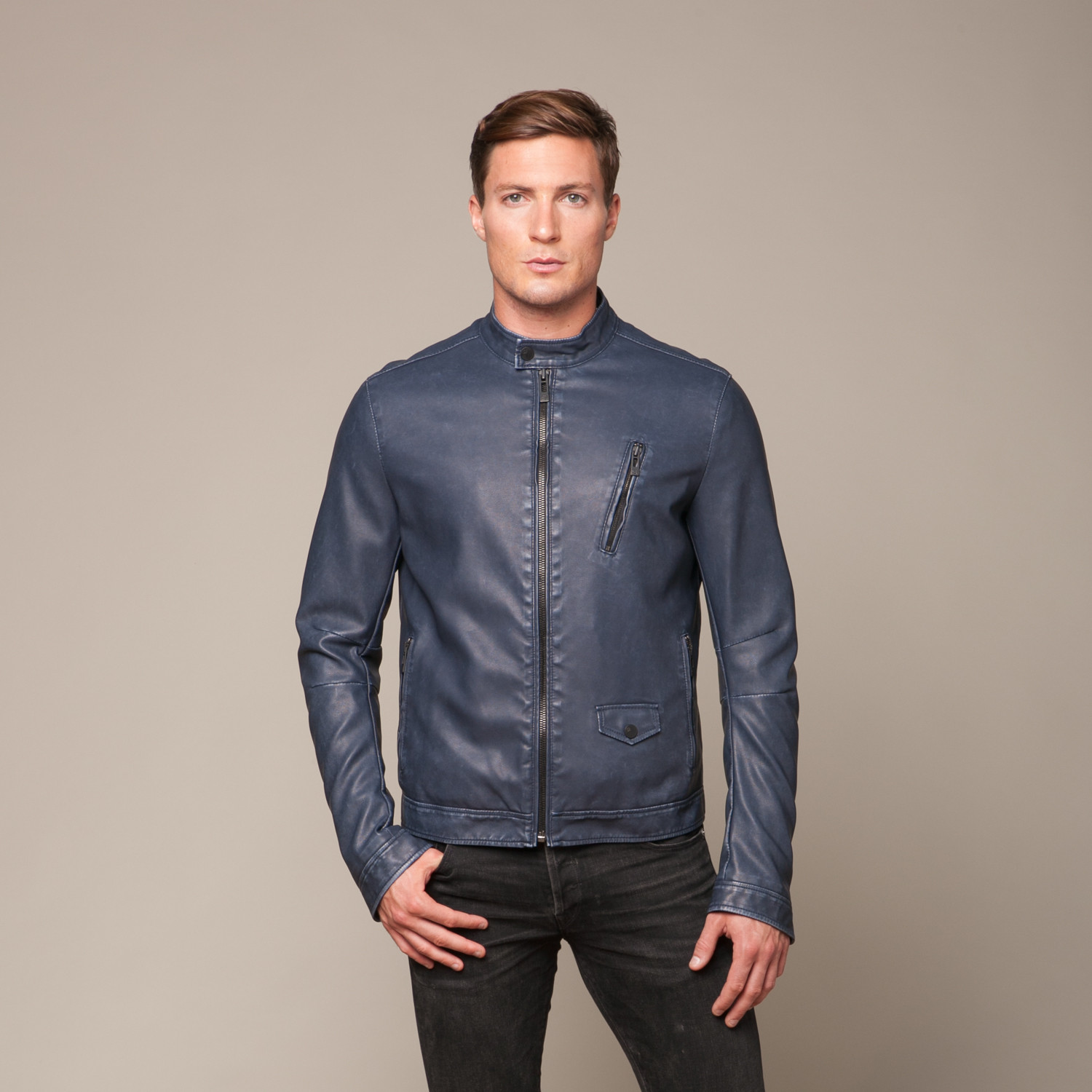 This Poly Bomber Jacket finds the perfect balance between racer-cool and blazer-formal. The zipped, seamed and button-flap pockets provide a nice visual interest to the navy leather, and it's as flattering as it is versatile.