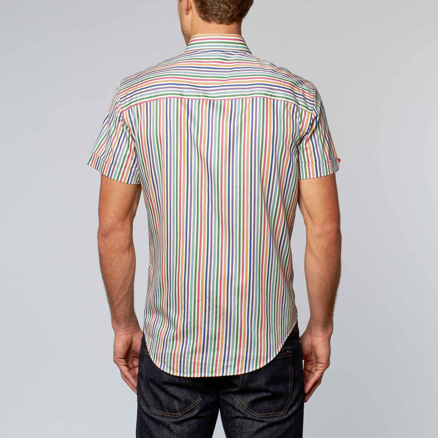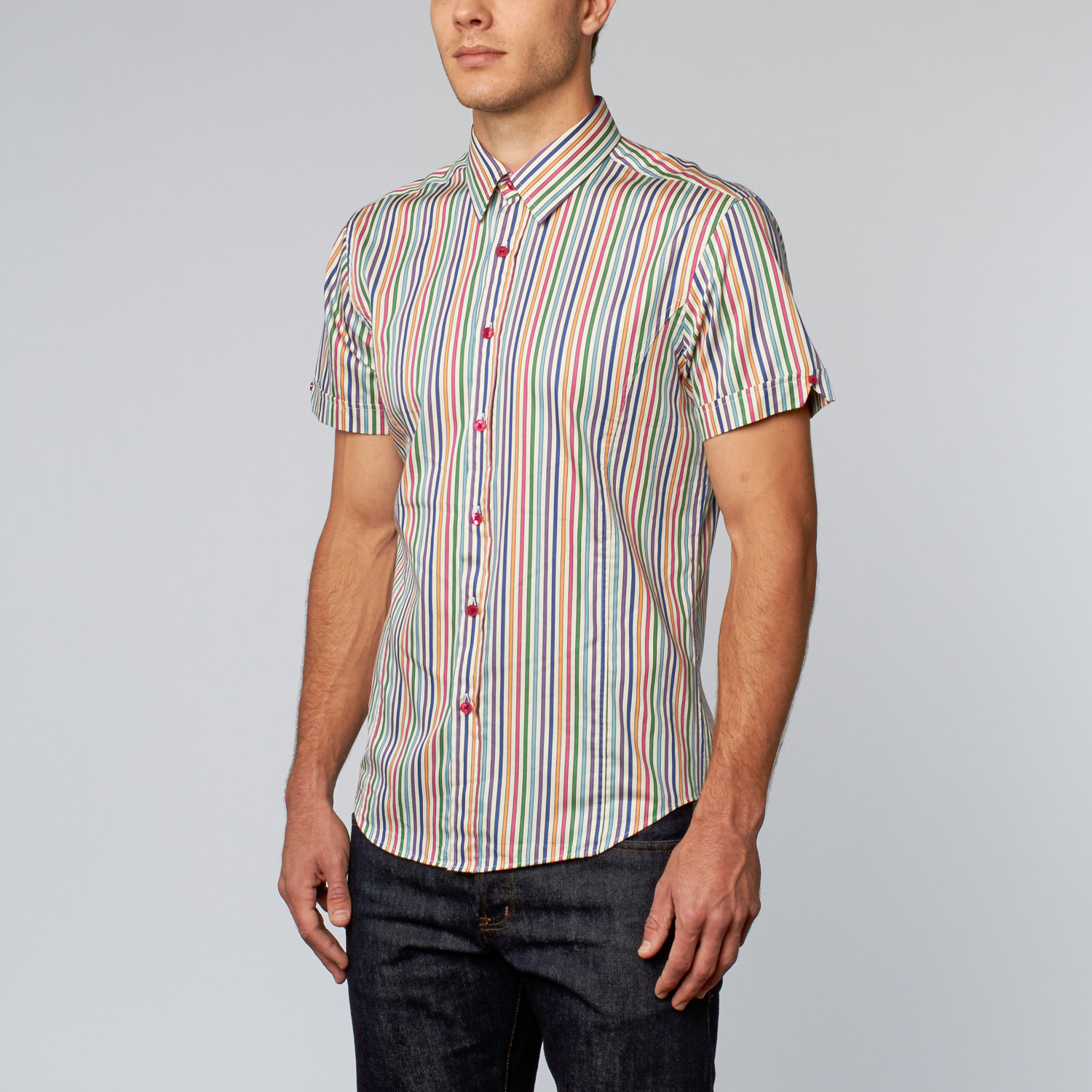 Short-Sleeve Stripe Button-Up // Fuschia (L)