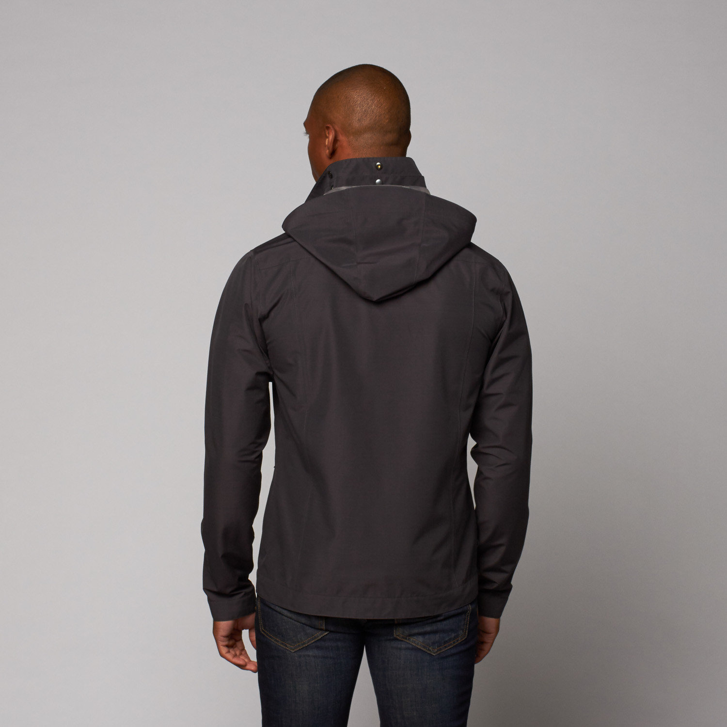 The Tripoly Jacket is a stylistic coup you can wear in any weather. Made from an organic cotton slub and poly blend, it boasts ample pockets and a snap-in hood.