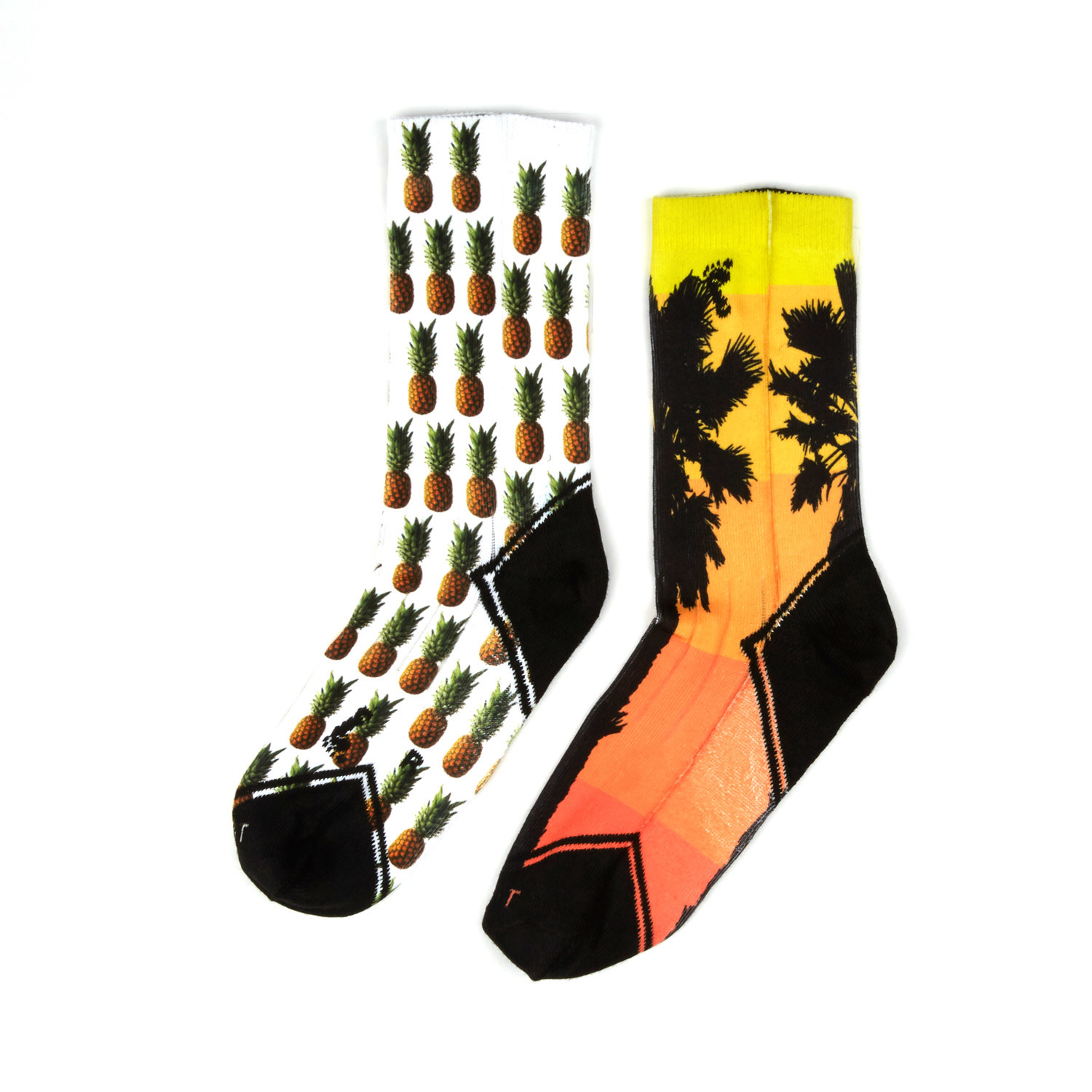This set of two colorful socks tell the world you're ready for your weekend. Coasters brings pineapples and palm trees to your sock drawer with some fun beach style.