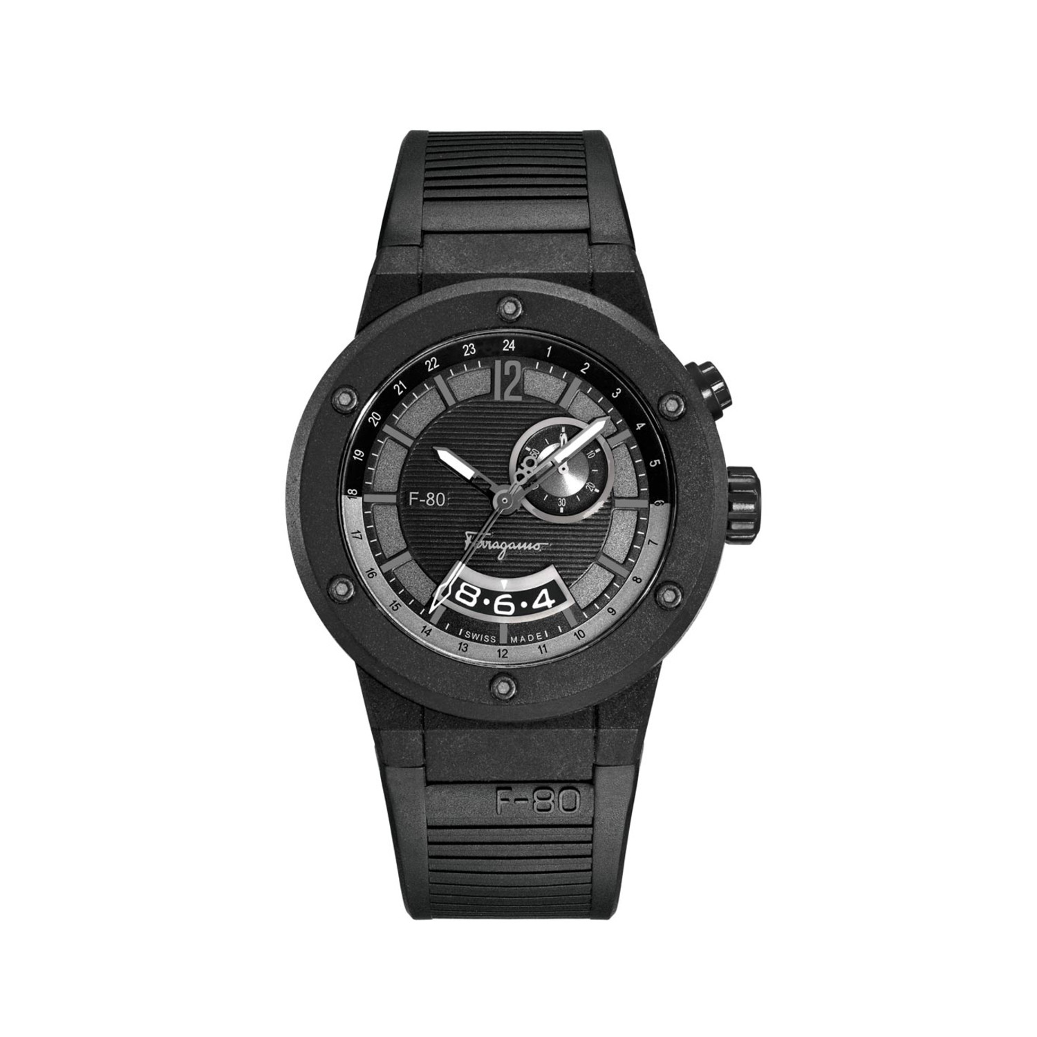 Salvatore Ferragamo’s iconic F-80 line has been among the company’s most popular and successful timepieces ever since the collection made its debut in 2008. The F-80 line has grown to include a variety of styles, including this beautiful black carbon fiber iteration.
