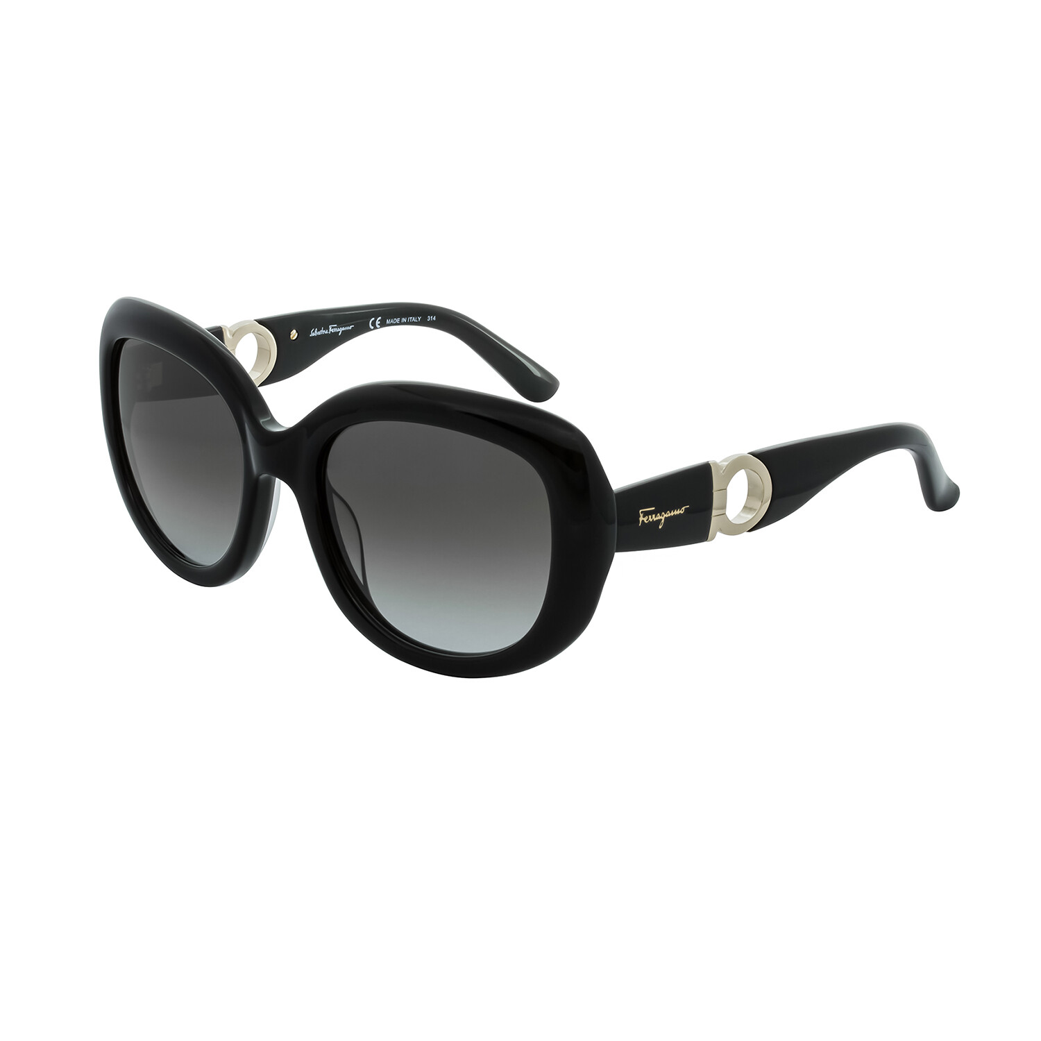 Salvatore Ferragamo Unisex Round Oversized Sunglasses // Black + Smoke Gradient