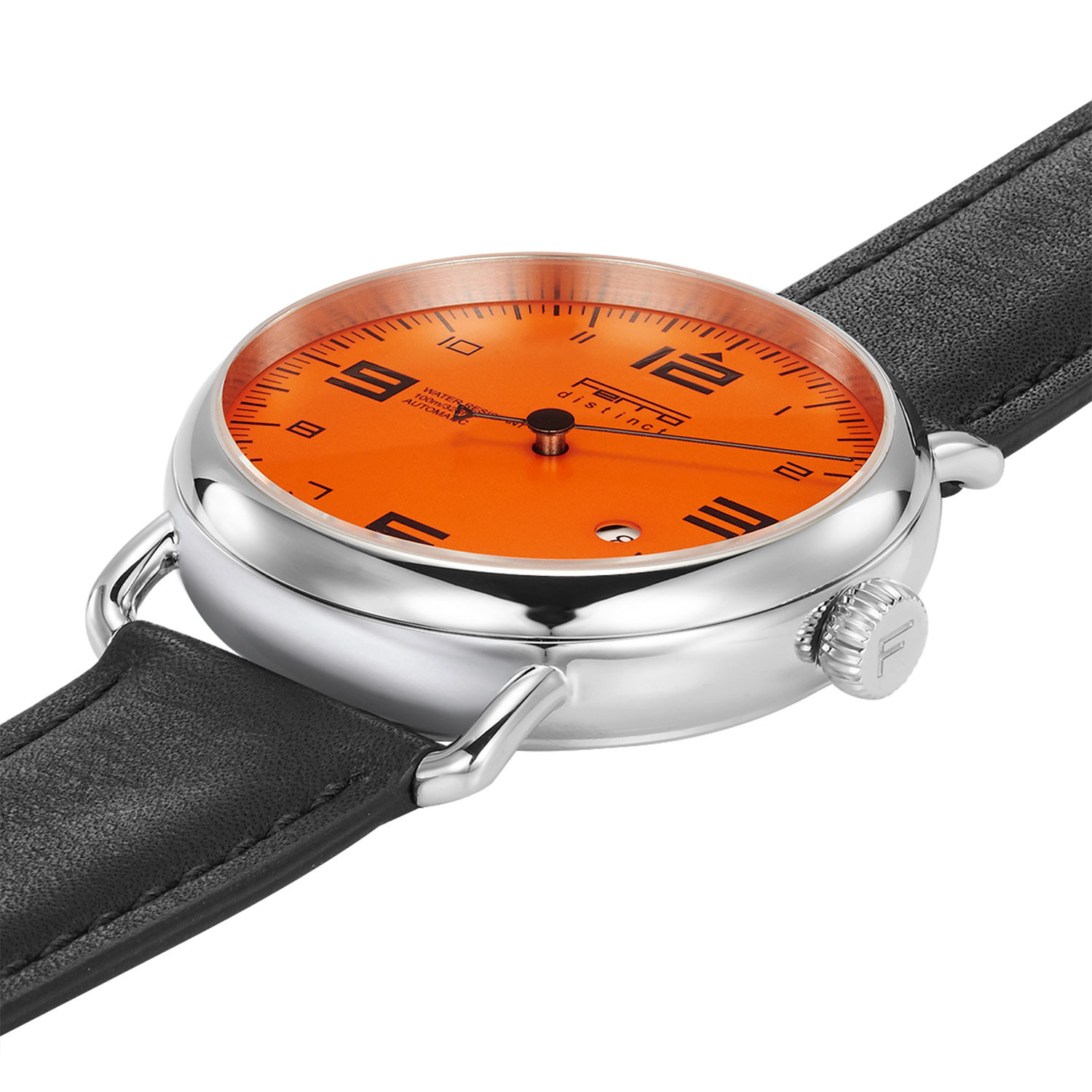 Inspired by the tachometer of sports cars, the Distinct Automatic watch by Ferro is geared with a 316L brushed stainless steel 44 mm case and buckle, sapphire crystal and a genuine leather strap as well as a highly legible face. It's time to bring a Distinct look of luxury to your wrist.