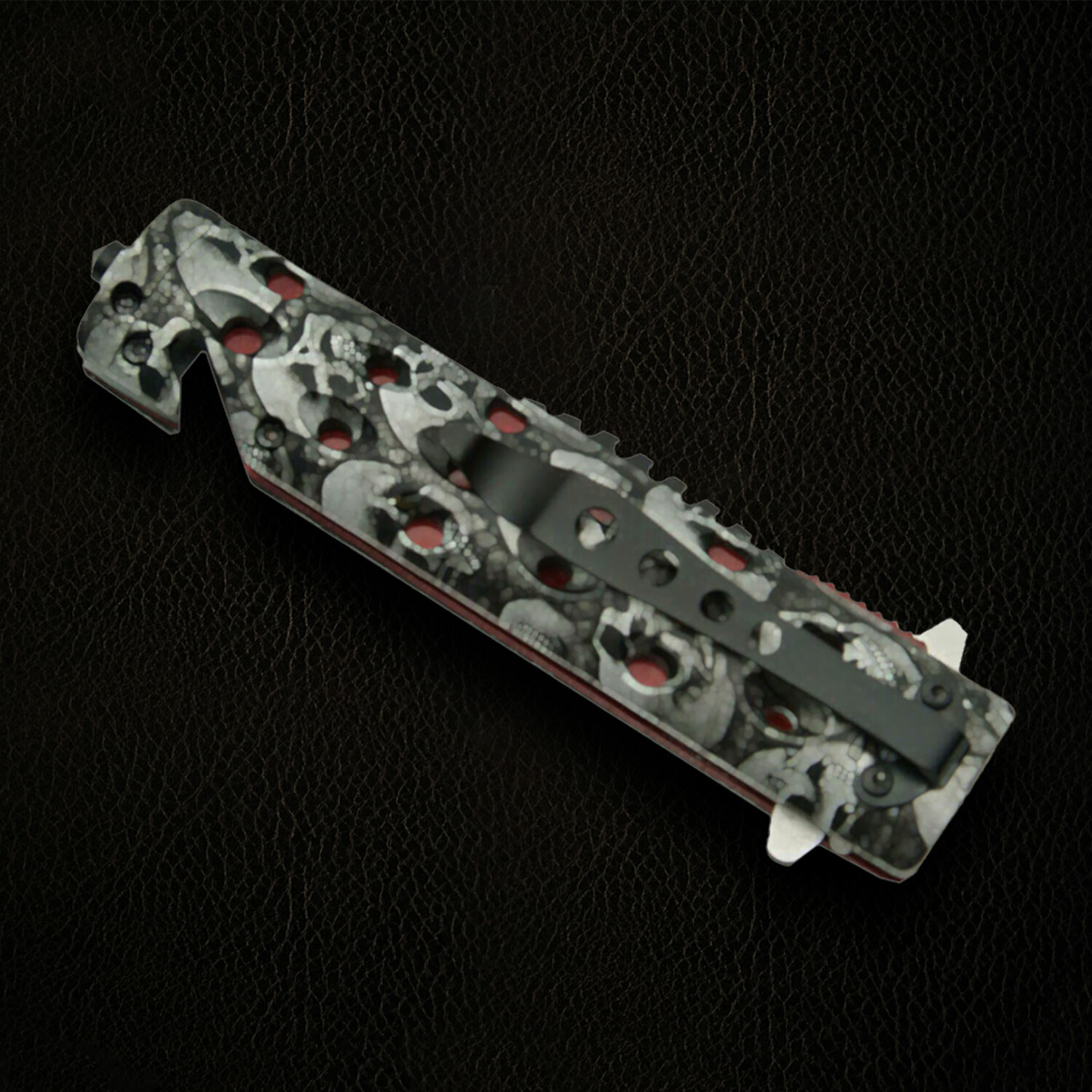— Handle Material: Gray, Black Blade With Skulls